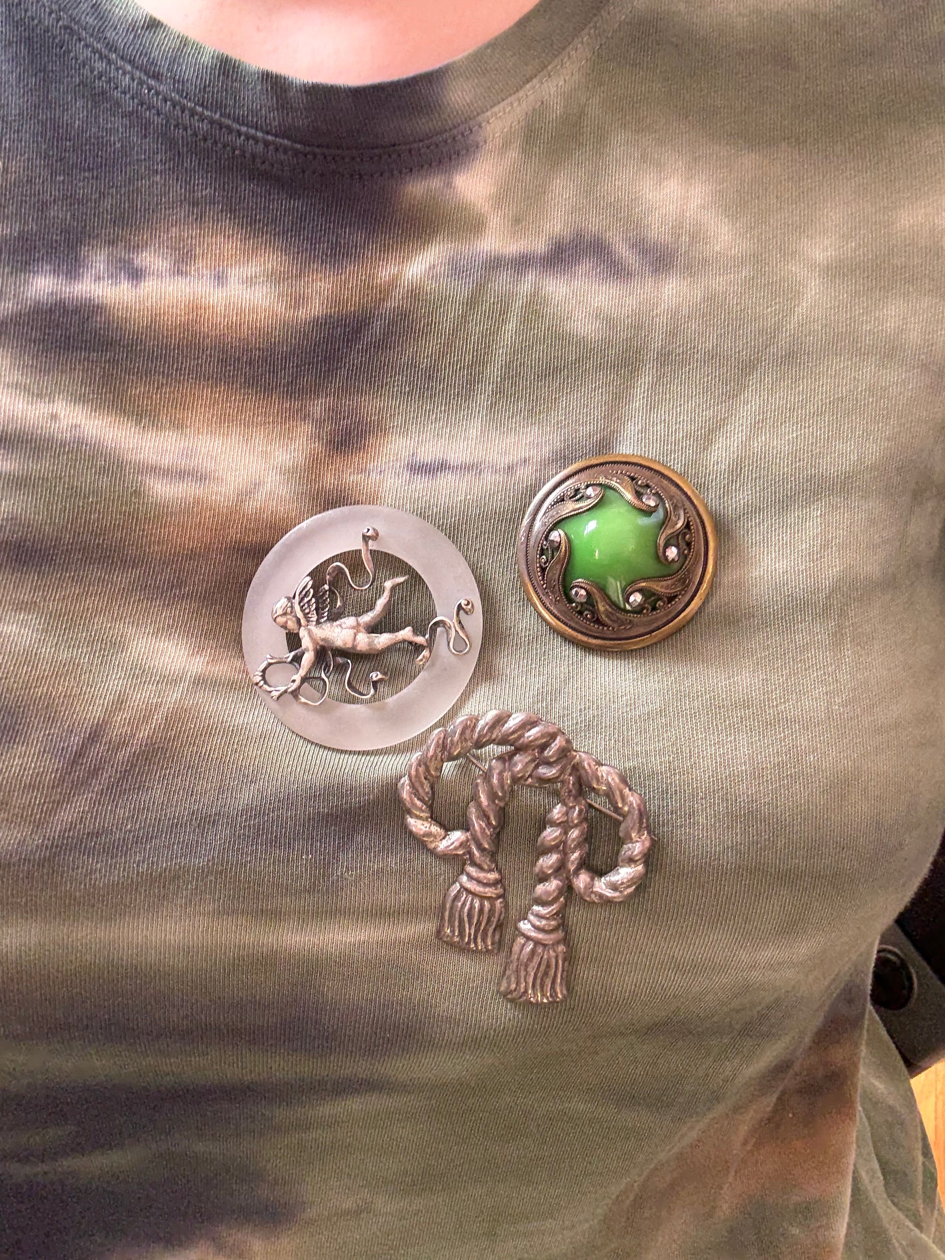Antique Art Nouveau Green Marcasite Brooch