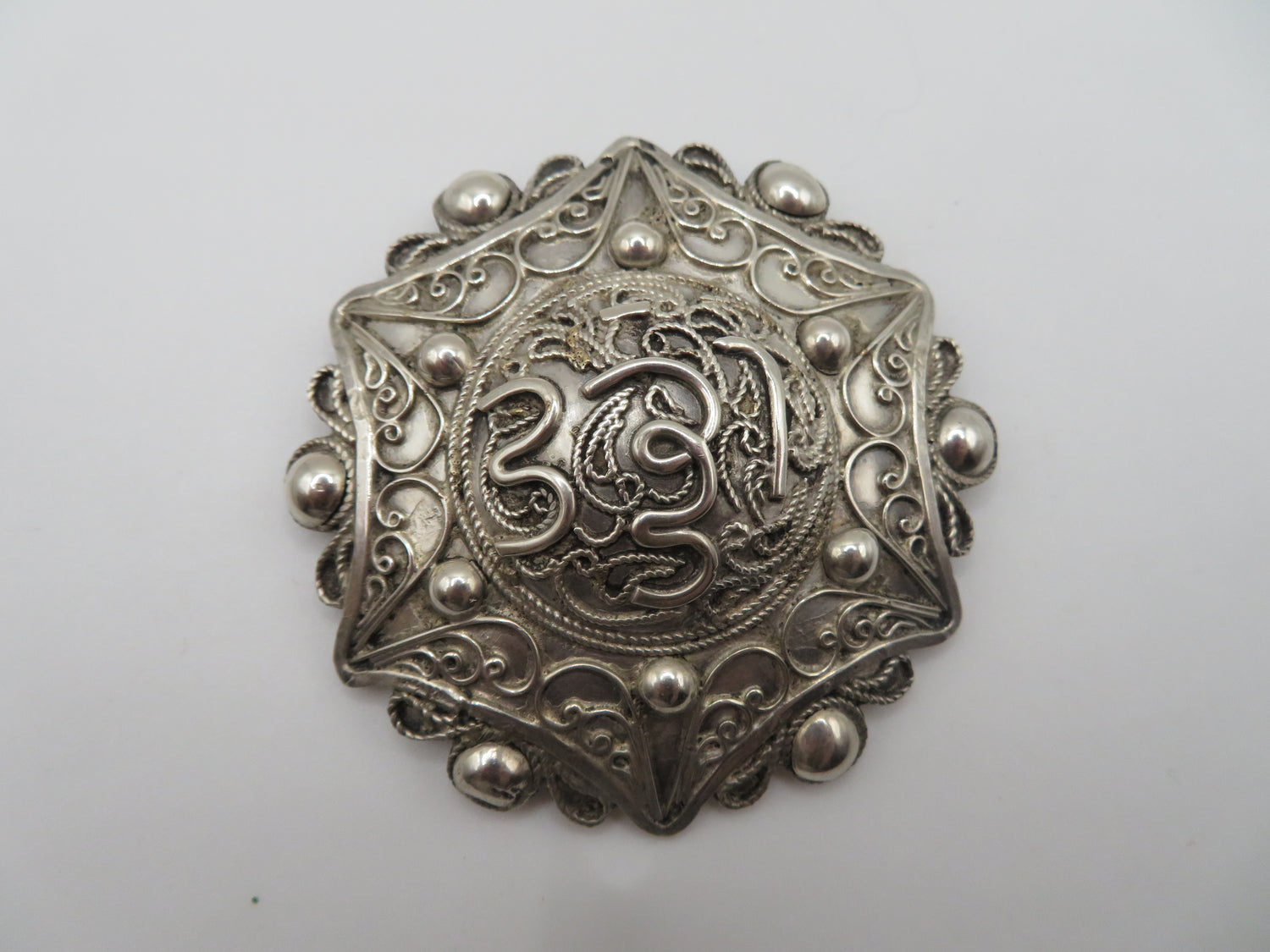 A rare Antique North African or Arabic Sterling Silver Brooch. Weighty and very unique looking.
