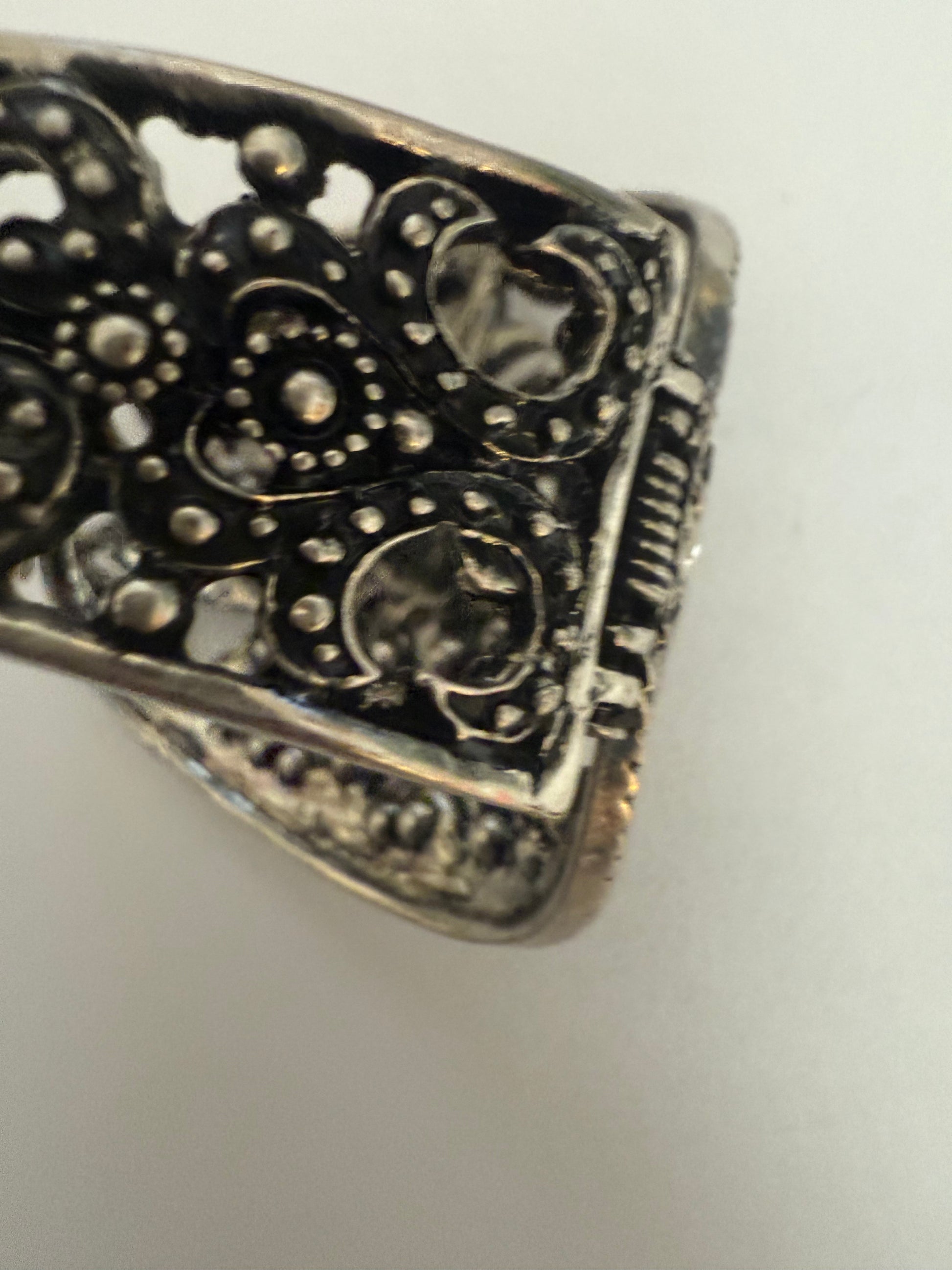 Though we haven't been able to find a photo of her wearing this exact piece yet, these items are from her personal collection which she built over decades--often, not every piece is documented, and she wore so much jewelry, that sometimes it's easy to miss in her multi-layered stacks. But the fact that she kept this in her personal collection is truly meaningful.