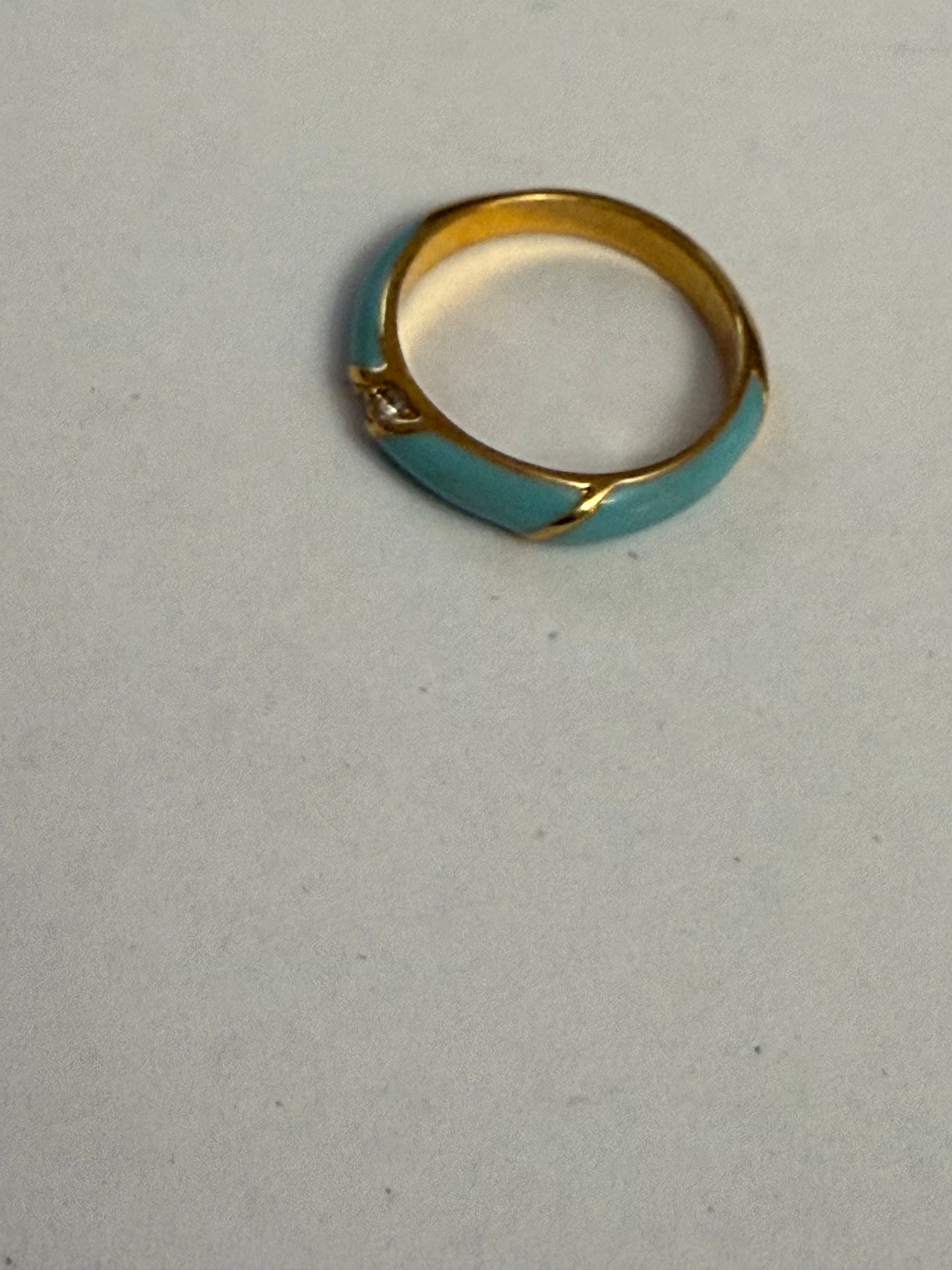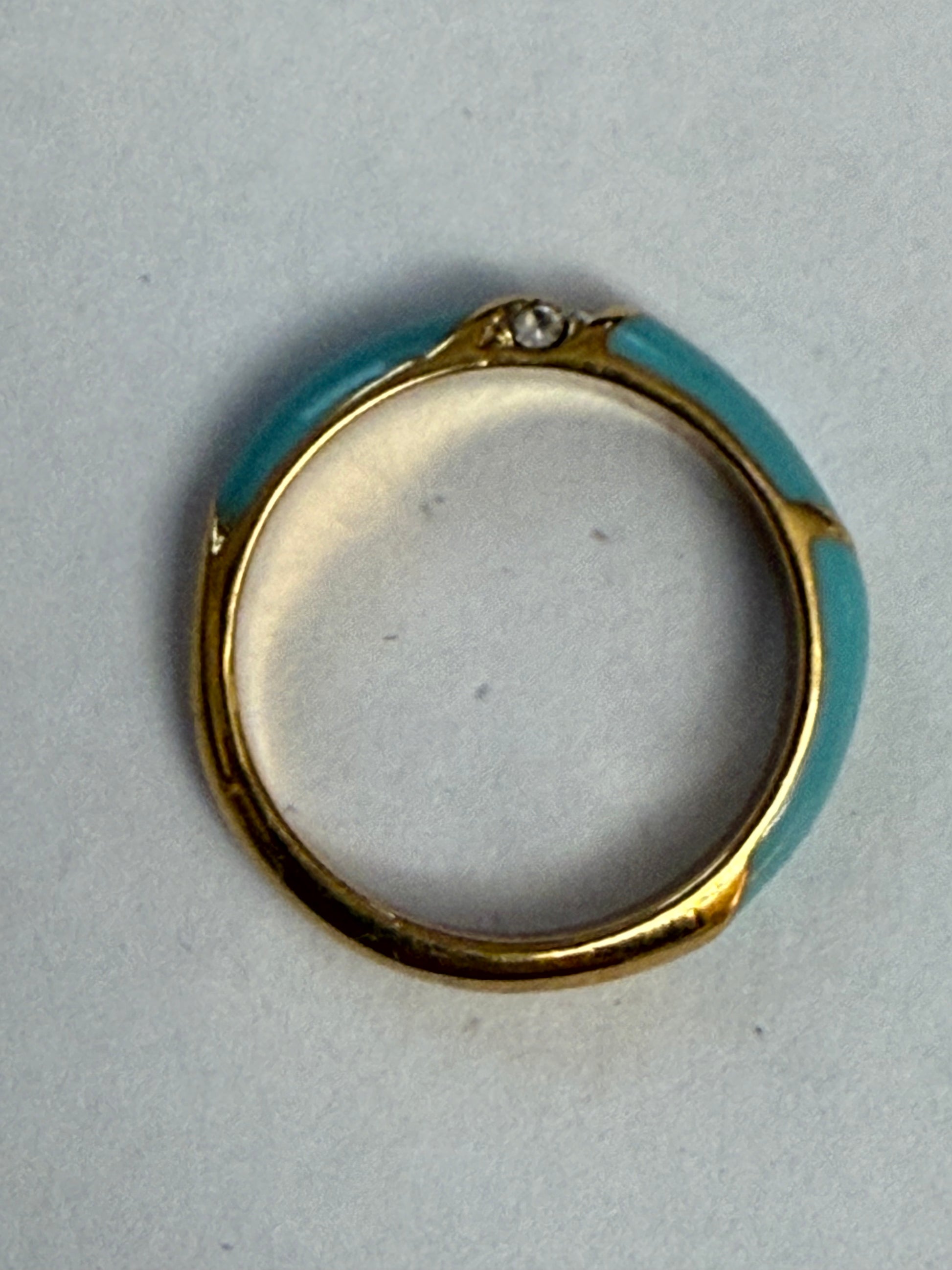 From Iris Apfel's personal collection: a beautiful little enamel rhinestone ring that looks excellent as a pinky ring, or styled up higher on the finger in a ring stack. This is a really great everyday piece from the estate of Iris. Think of it as having a little bit of Iris with you in your ring stack every single day, since it goes with everything.