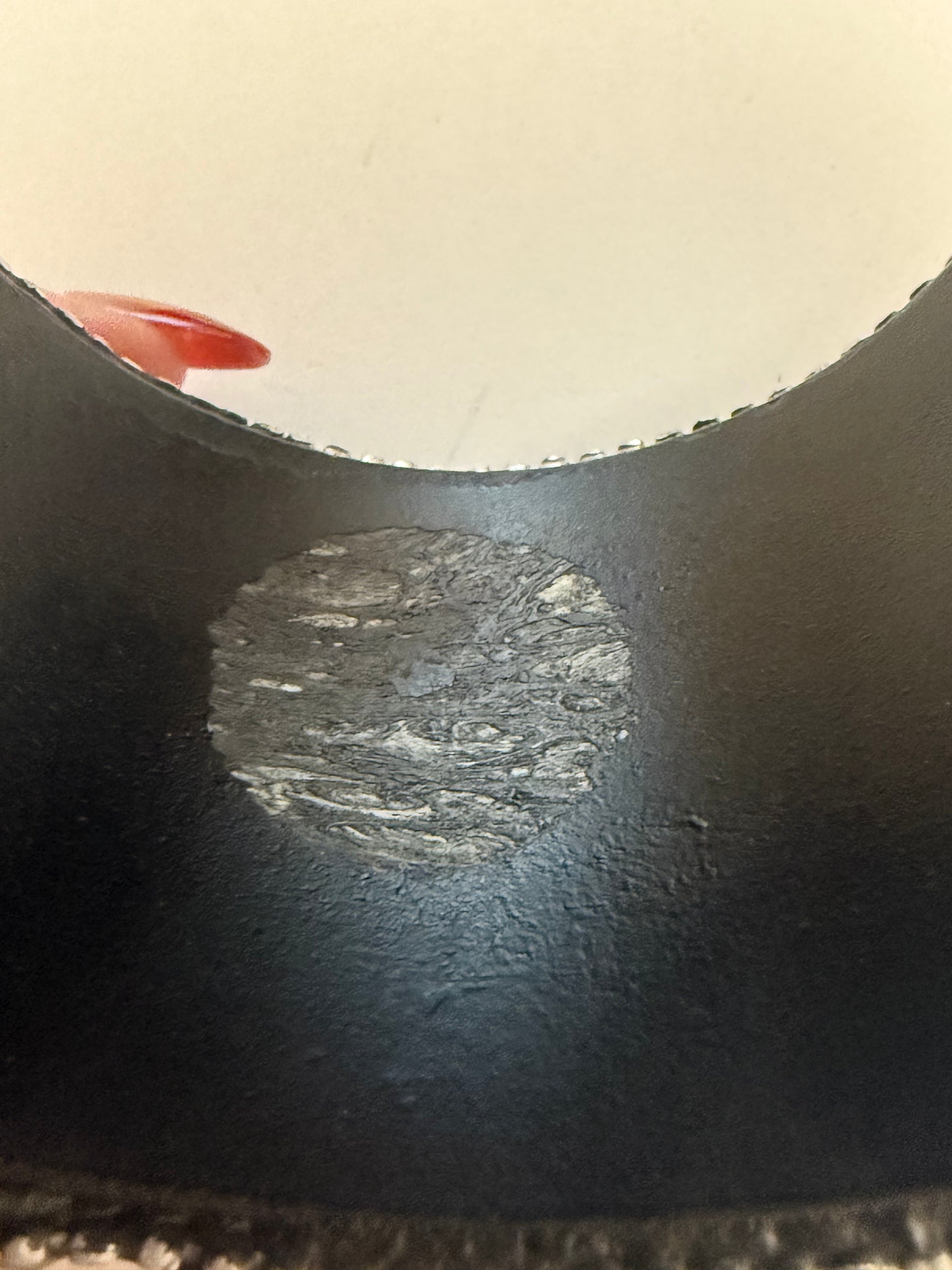 MATERIALS: Ebony wood, black clay, mirror, glass rhinestones.
