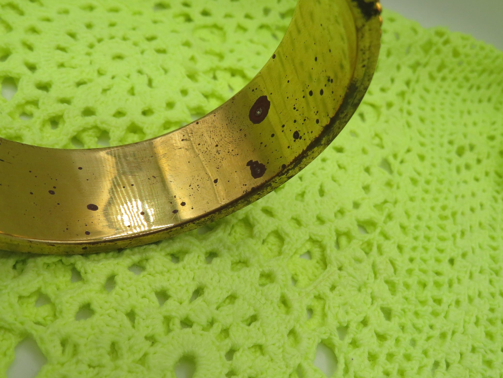 CONDITION: In good secondhand condition, with some normal wear and tear that comes with age. Light visible wear throughout. Tarnish spots on inside of the bangle and on some gems. Gems imperfectly set which gives a rugged, antiqued handmade look.