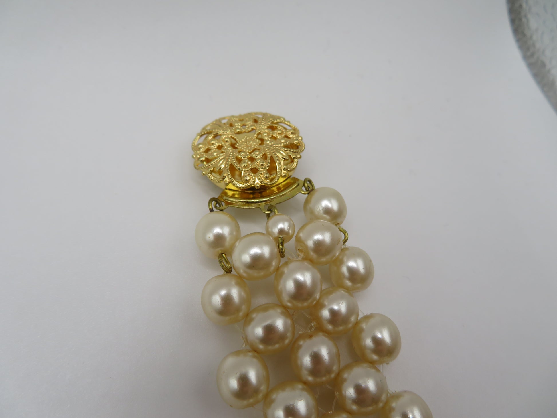 MATERIALS: Faux pearl, gold tone metal.