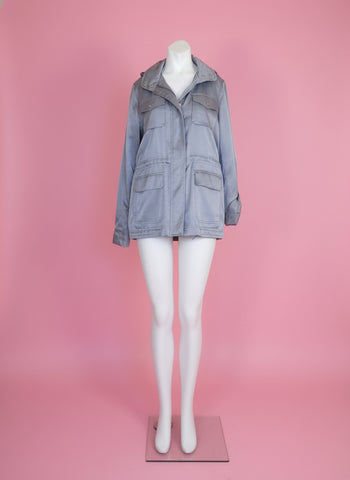 From Iris Apfel's personal collection: A really great Vintage Vince Cargo Jacket with its original tag. Lightweight, tawny grey shade with a slight sheen and perfectly oversized pockets. Perfect for an everyday spring jacket.