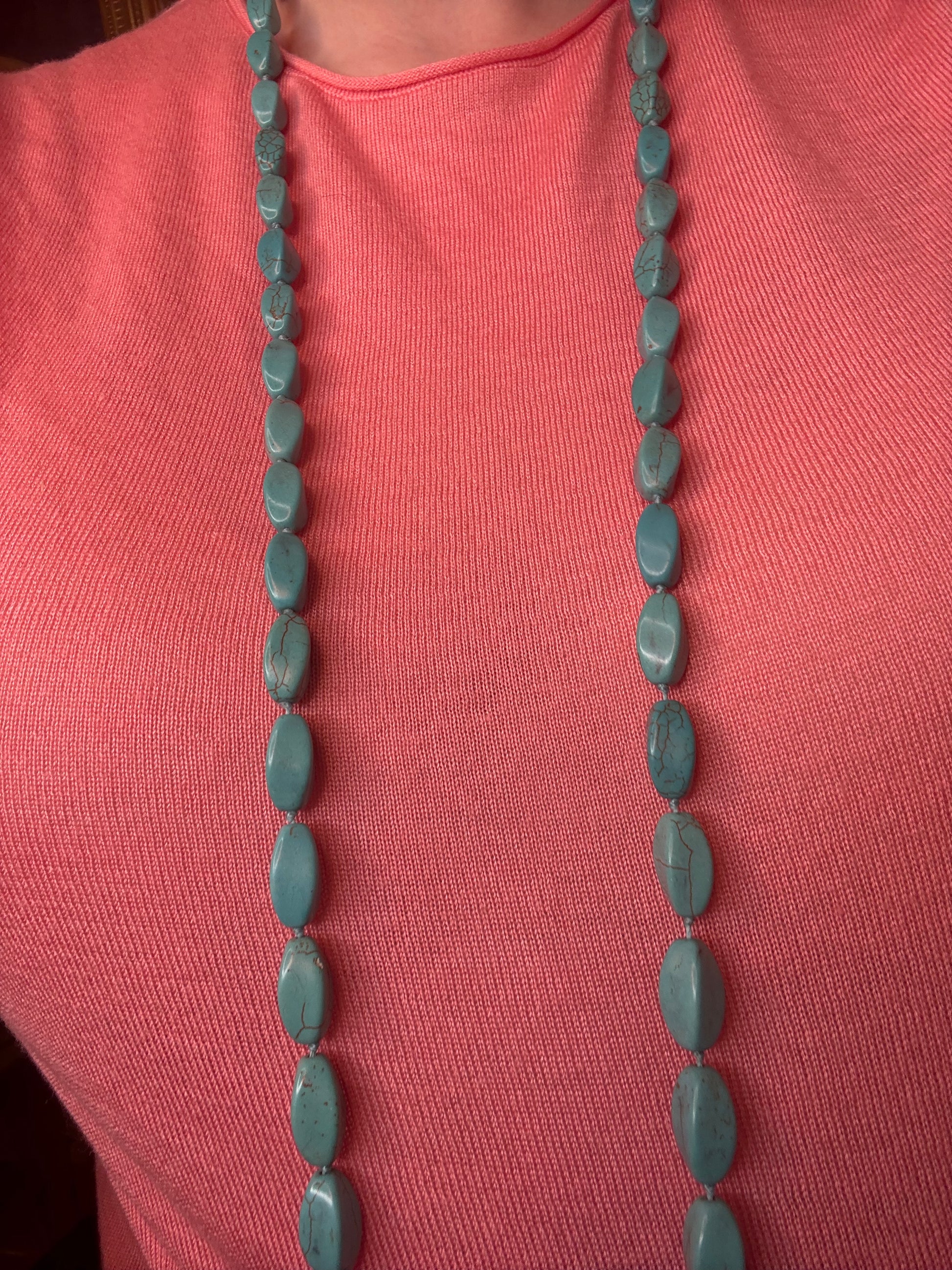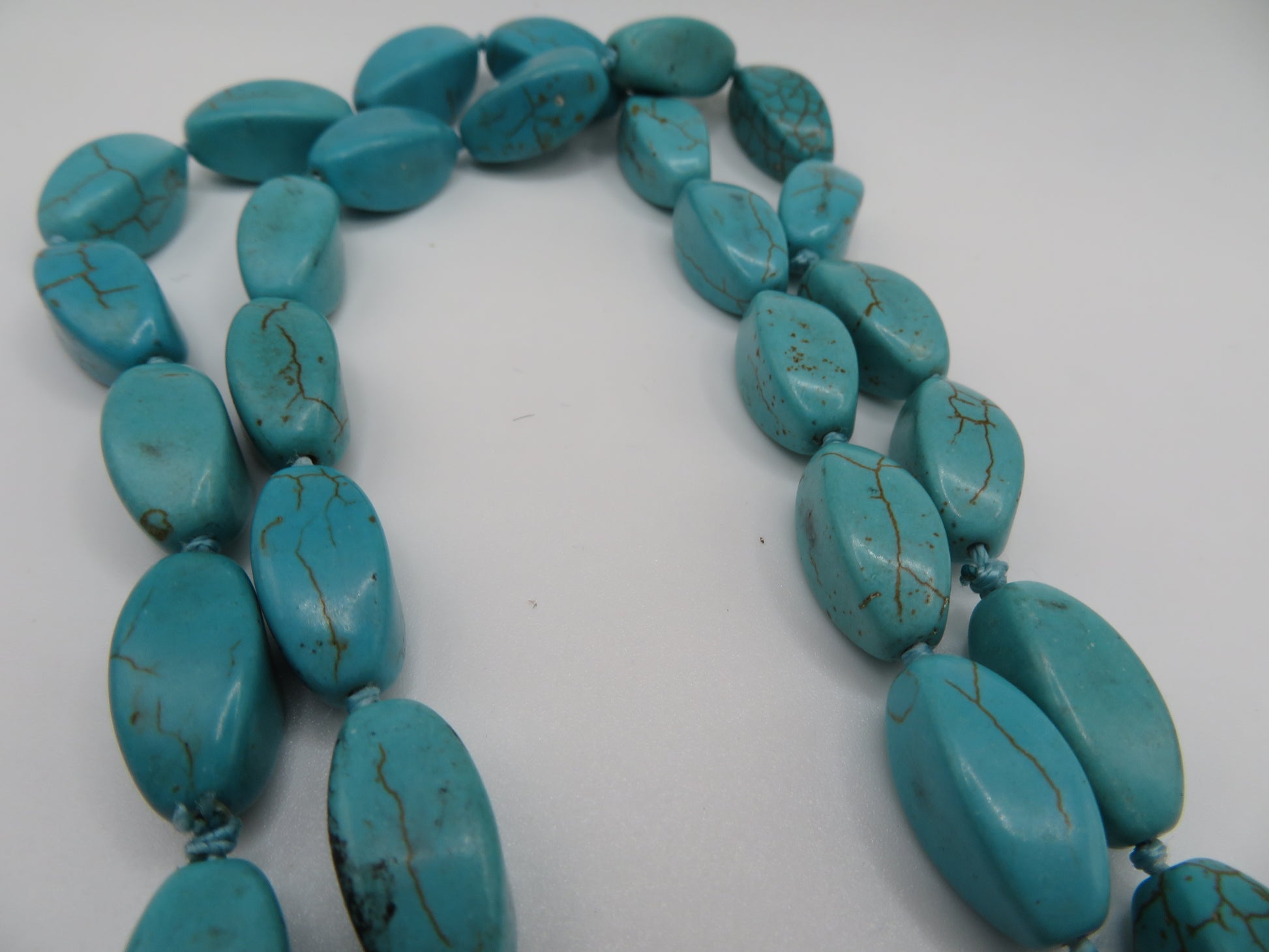 MATERIALS: Turquoise colored dyed howlite, cord.