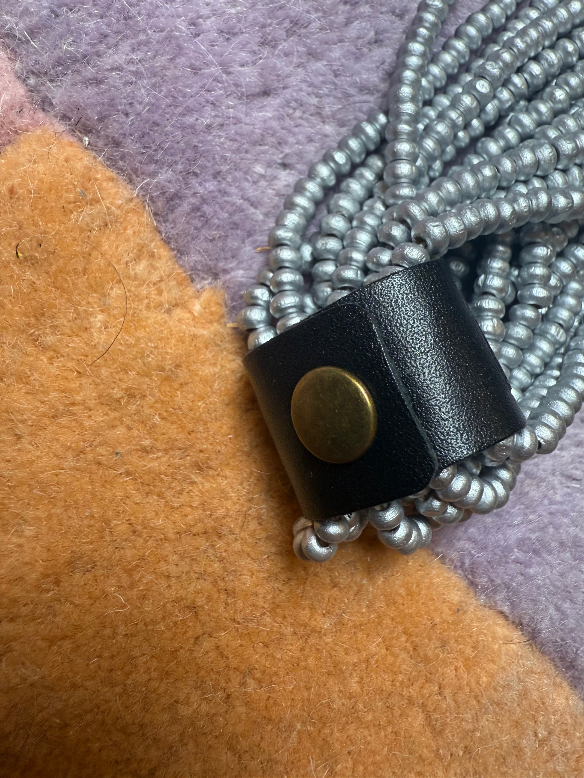MATERIALS: Vintage wood beads, leather closure.