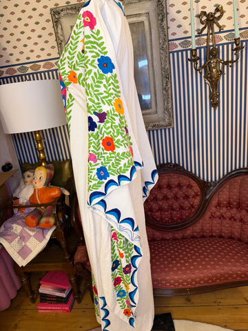 From Iris Apfel's personal collection: A very special Vintage Nativa Mexican Embroidered Gown. This is a great, original, iconic piece that is hand-embroidered. The ethereal sleeves are incredibly long and truly unusual.