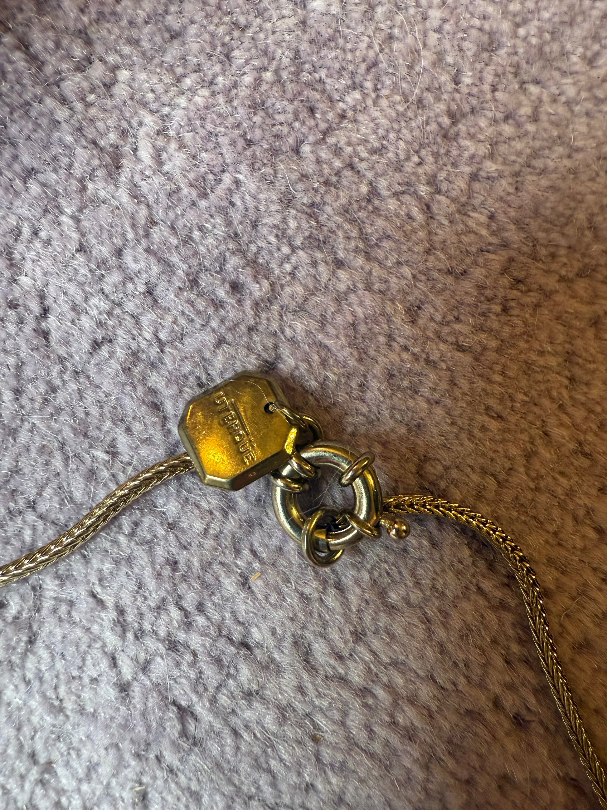 MATERIALS: Gold tone metal, resin.