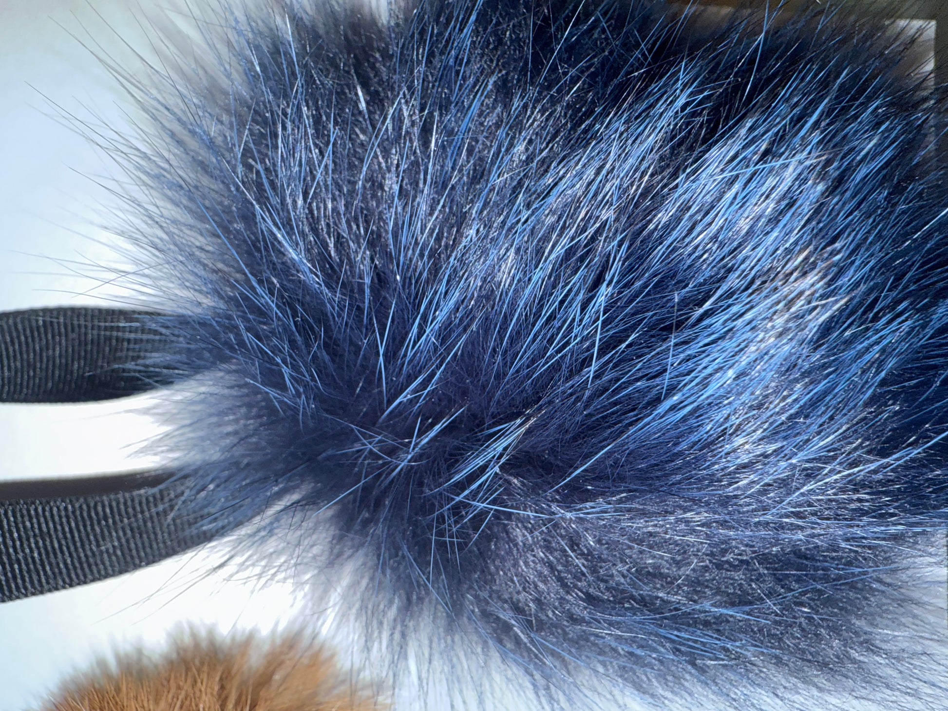 From Iris Apfel's personal collection: A double fur puff bag charm or key chain, which can also be worn as an accessory on a belt, or as a necklace pendant. These two likely-rabbit or fox fur puffs are sizeable and fluffy wonders. You can keep them together or split them up and wear separately or gift one to a friend. Consider it a two-in-one.