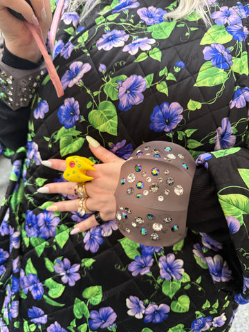 Dollchunk items are delicate and should be treated as such. Each piece is handcrafted in New York using materials such as solid sterling silver, ceramic,, hand-placed Czech crystals, brass and acrylic. Please consult our product descriptions online for information on specific materials. Avoid contact with direct sunlight, water, hand sanitizer, lotions and other liquids and be extra careful not to drop your jewelry.