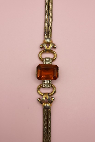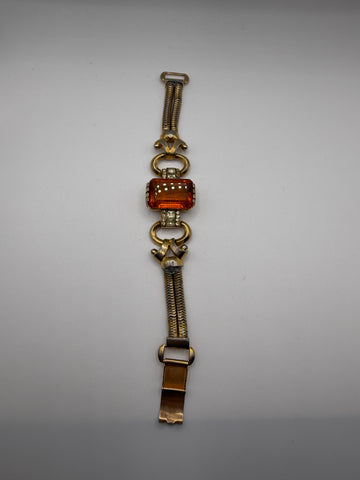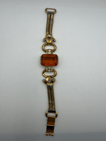 Vintage 1940s Citrine Glass Gold Retro Bracelet