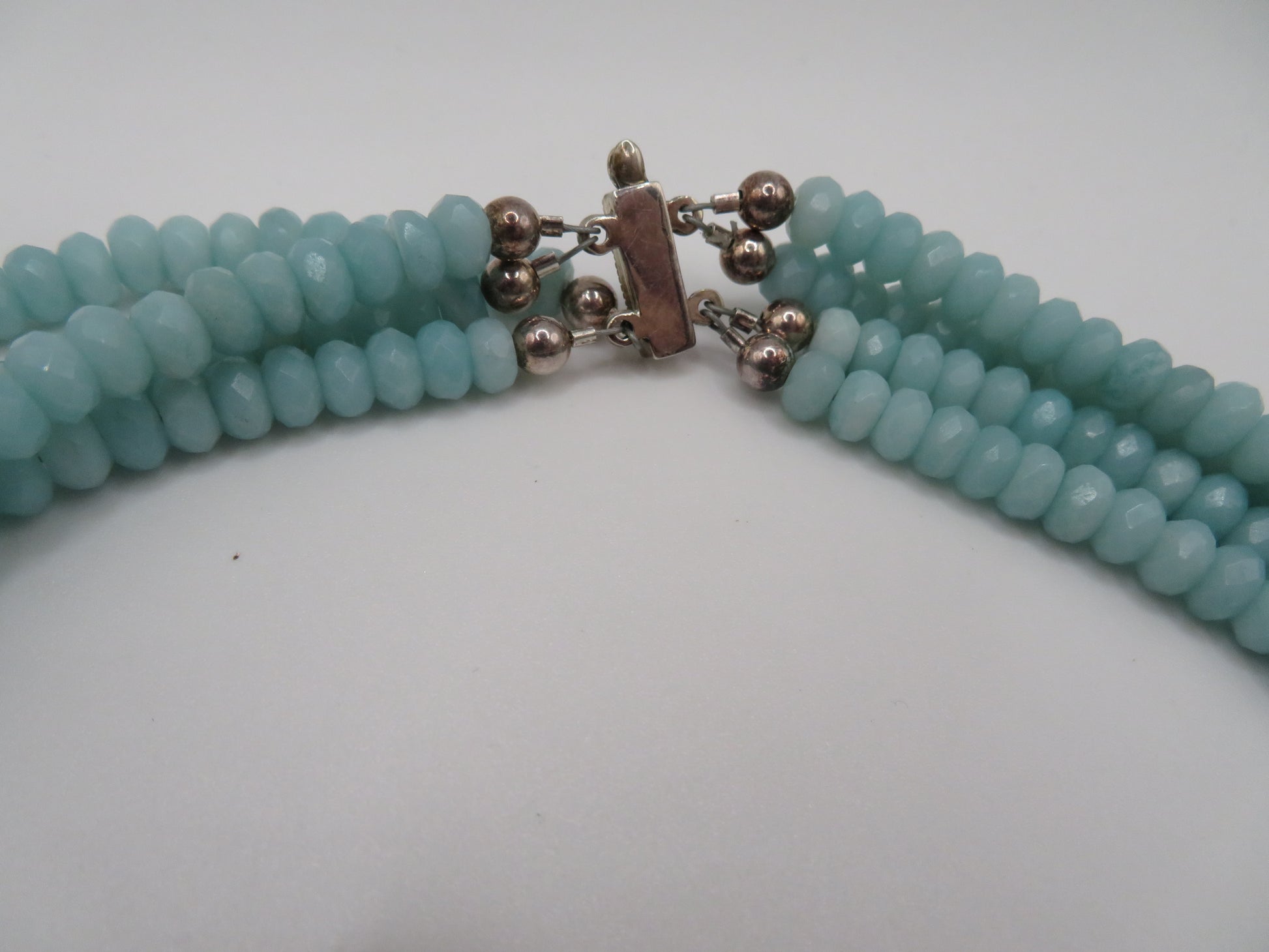 Vintage Aquamarine Gemstone 4-Strand Sterling Silver Necklace
