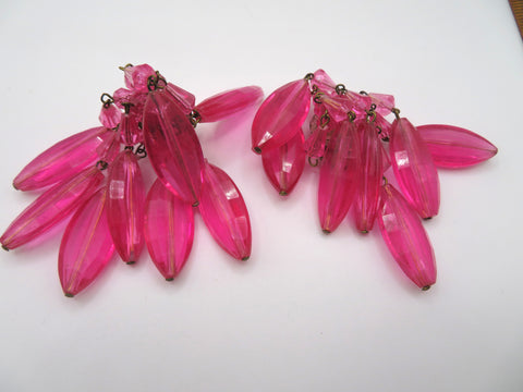 Vintage Austrian Candy Pink Chandelier Clip On Earrings