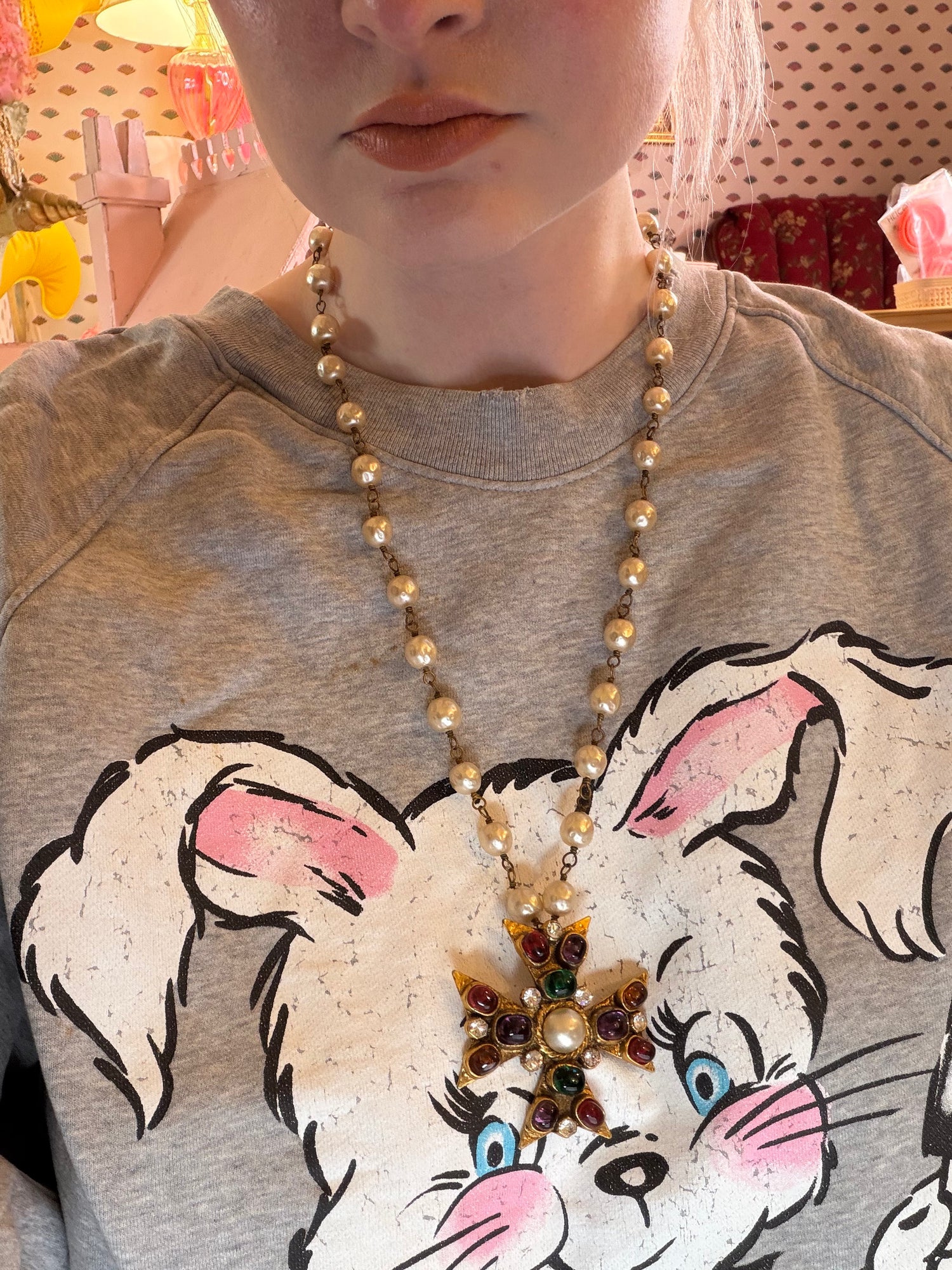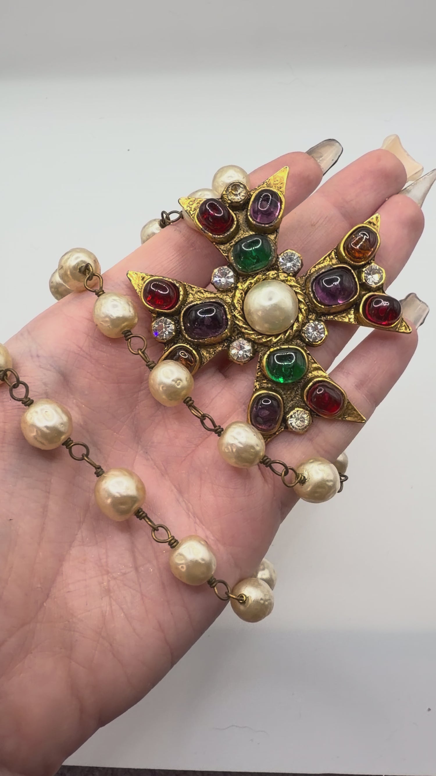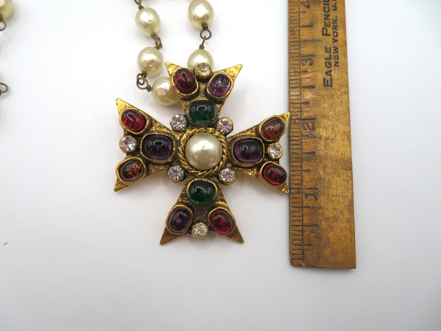 Vintage Chanel 1985 Gripoix Pearl Maltese Cross Statement Necklace