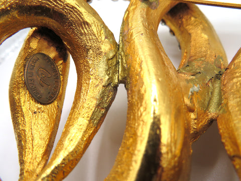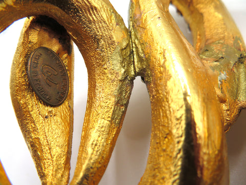 CONDITION: In good secondhand condition, with some light normal wear and tear that comes with age. Slight wear including light scratches. Some visible light distressing/cracking as is typical for Christian Lacroix vintage gold pieces of this age.