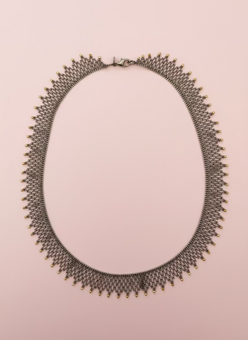 What we love most about this vintage Christian Tse Platinum & 18K Gold Collar Necklace is how well it layers. It's the perfect, wearable piece to add to any collection of chains. Rare find.