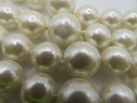 We love the impact of a multi-strand vintage pearl necklace and this is a really great example of a very wearable, pretty, everyday option that can be transformed for all different occasions. Our Vintage Chunky 5-Strand Pearl Collar Necklace was made in Japan (signed) in the golden age of faux pearls during the midcentury era. We love how the pearls get bigger in the center of the necklace, creating nice depth.