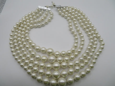 Vintage Chunky 5-Strand Pearl Collar Necklace