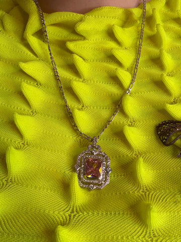 Photos don't do this glimmering beauty justice. Our Vintage Sterling Silver Pink Princess Necklace is the perfect, chunky, girly necklace to layer in any maximalist neck stack or wear alone for a formal occasion. Nice, substantial chain. Keep her forever. She looks like a fancy relic, or a sister to the Titanic necklace but better. Italian in origin, hallmarked Made in Italy.