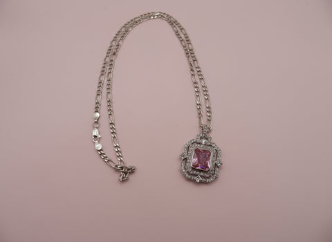 Vintage Sterling Silver Pink Princess Necklace