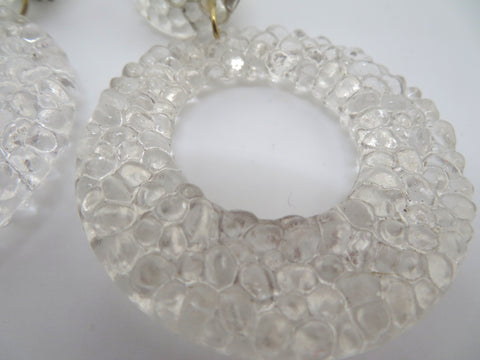 Vintage Clear Gummy Lucite Hoop Clip On Earrings