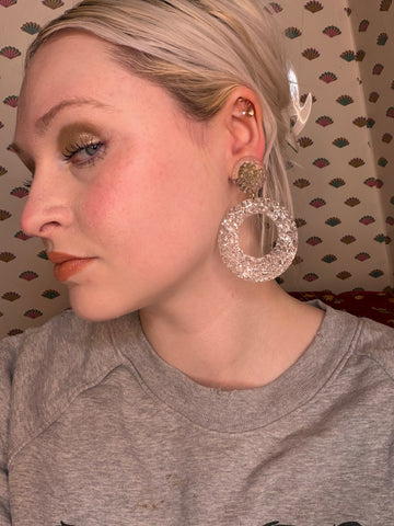 There is nothing quite like the beauty of vintage lucite jewelry. These Vintage Clear Gummy Lucite Hoop Clip On Earrings are a front-facing hoop style so synonymous with iconic vintage fashion, in a cool, clear shade. They have a major look without being heavy. We're obsessed with how impactful they are--so perfect with a messy up-do.