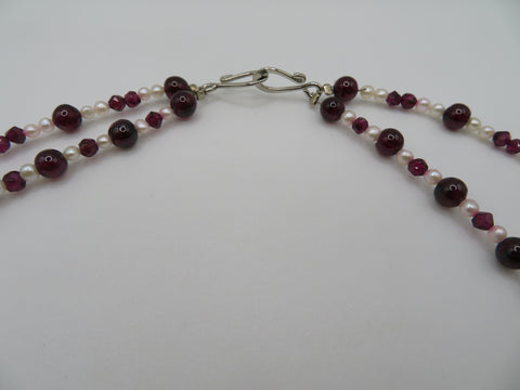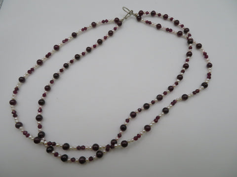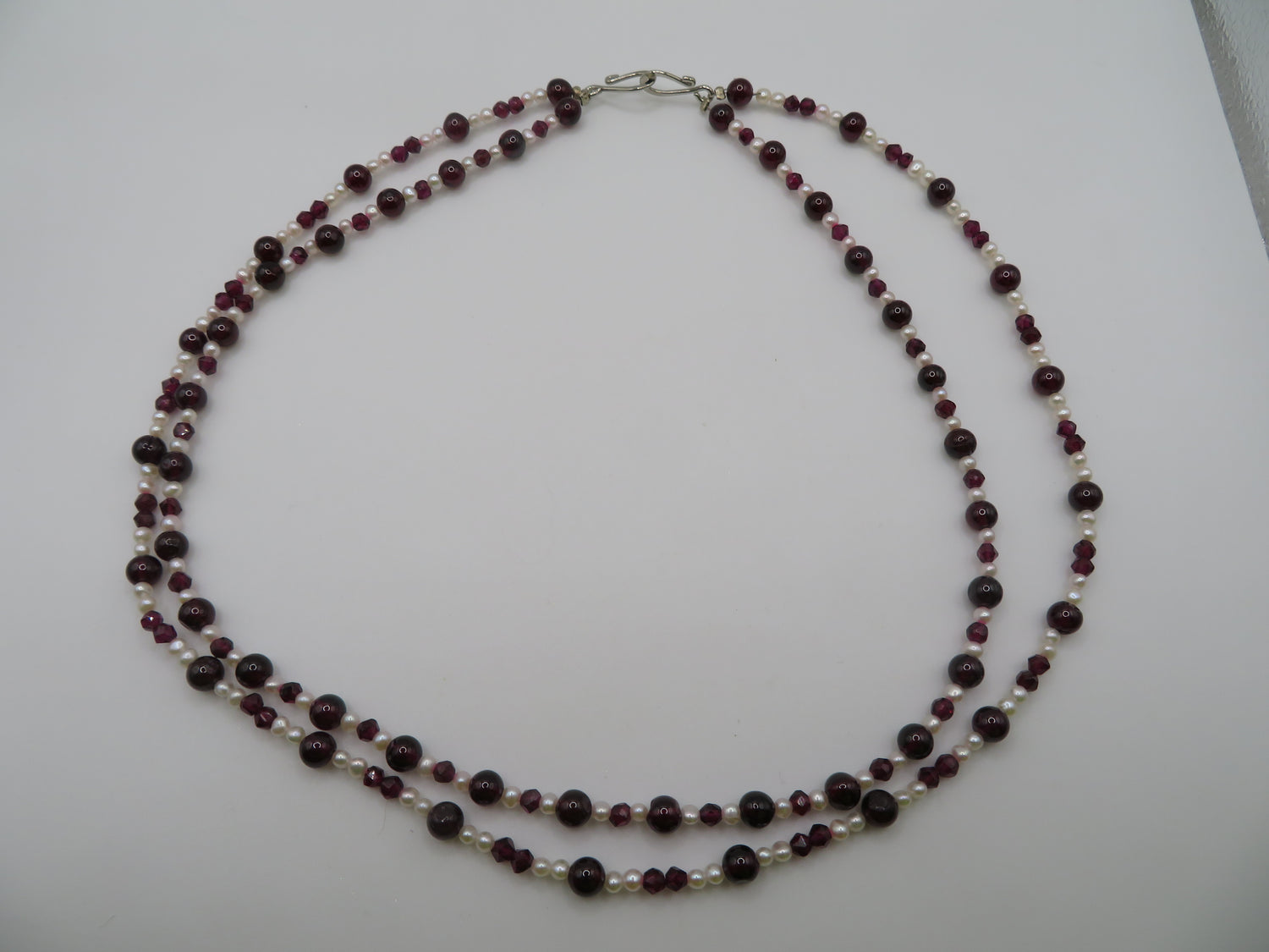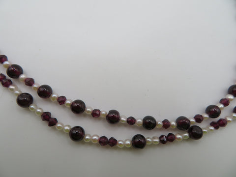 MATERIALS: Garnets, glass, cultured pearls, silver tone metal.