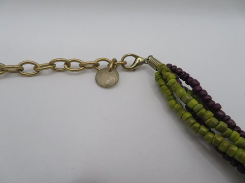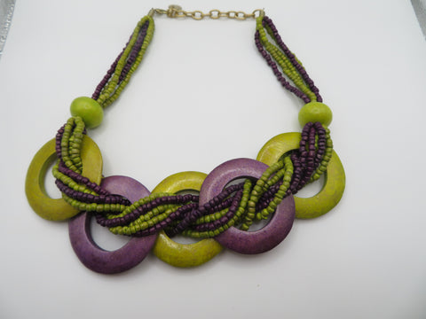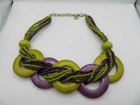 Vintage Eggplant Lime Wooden Statement Necklace