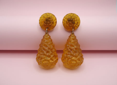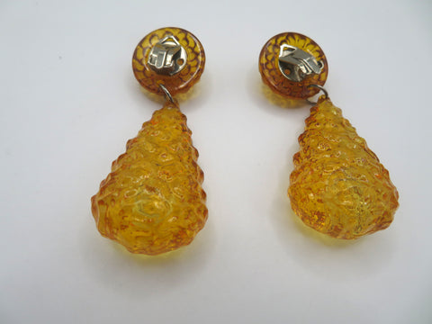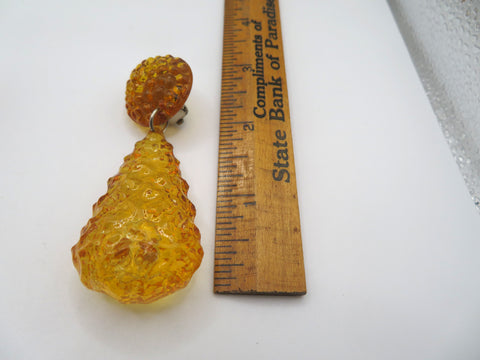 Vintage Golden Banana Gummy Lucite Drop Clip On Earrings