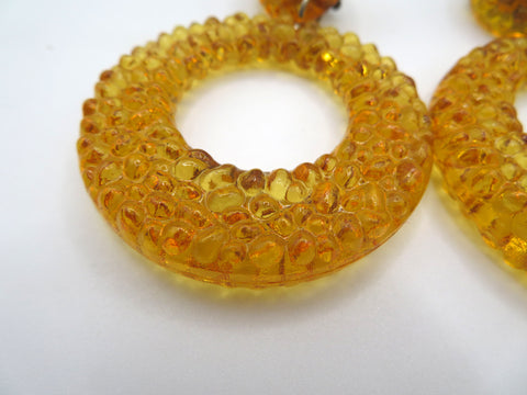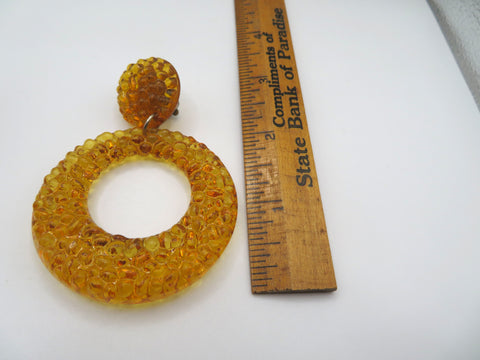 Vintage Golden Banana Gummy Lucite Hoop Clip On Earrings