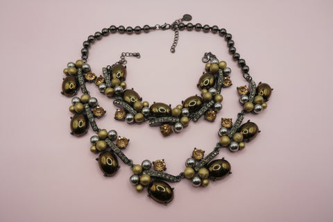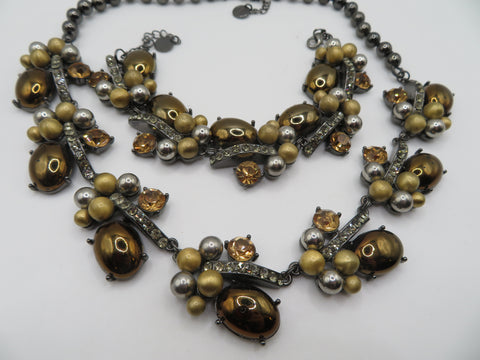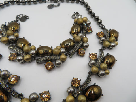 A gorgeous Vintage Golden Caramel Cabochon Rhinestone Necklace & Bracelet Set. Signed vintage Talbots. Pretty golden and silver hued cabochons are set against glittering rhinestones on this matching bracelet and necklace set. Vintage sets like these are becoming harder and harder to find.