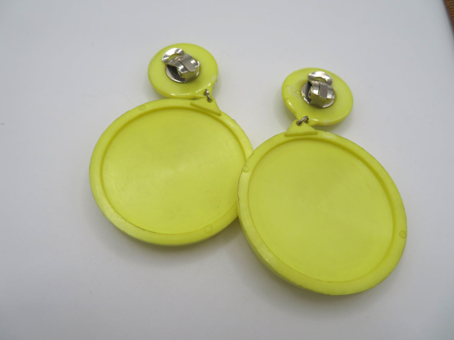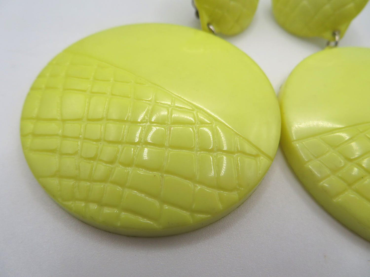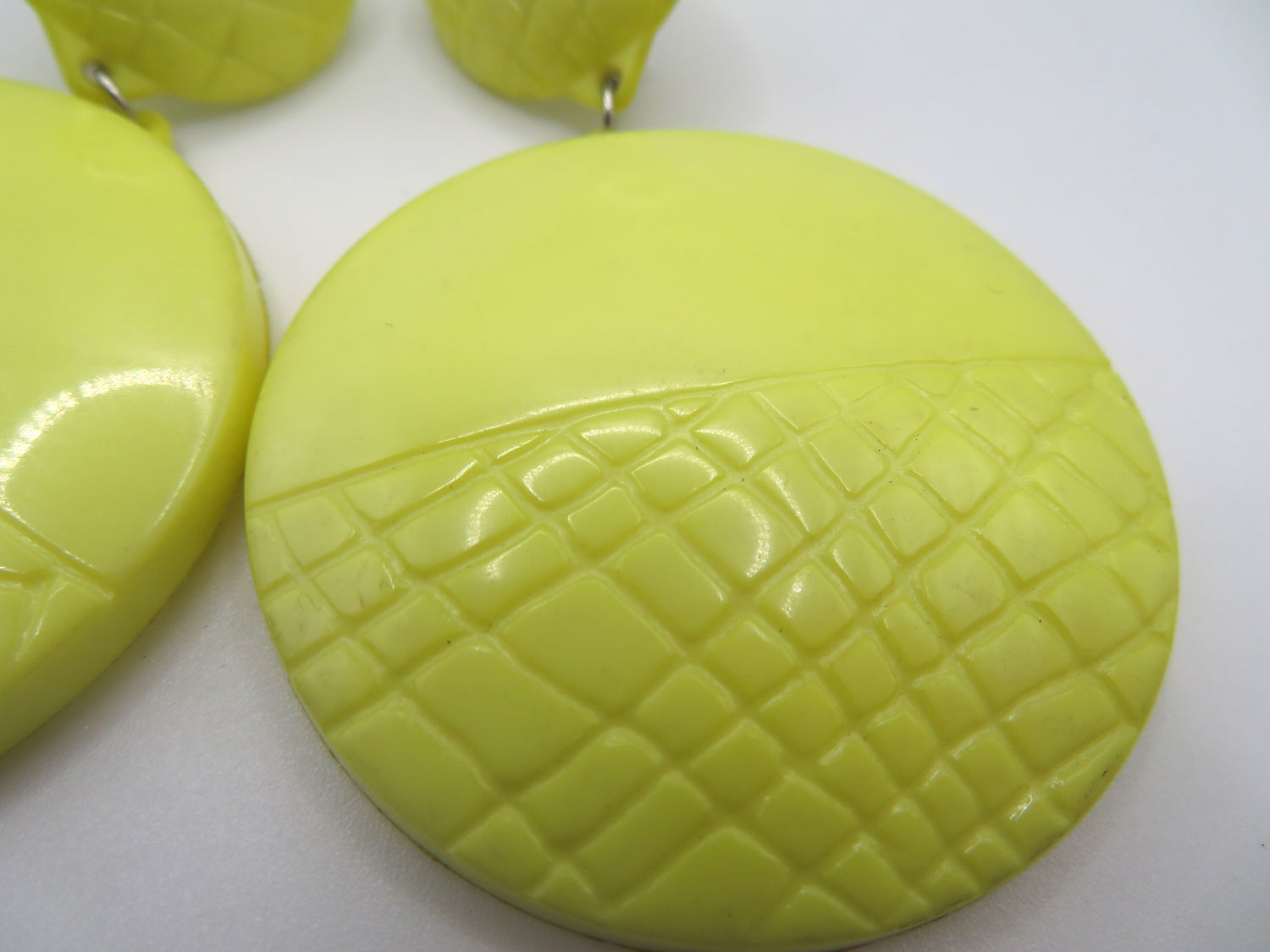 Vintage Huge Butter Yellow Quilted Circles Clip On Earrings