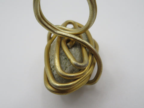 This unusual, chunky ring is certainly one-of-a-kind and huge. Our Vintage Huge Chunky Wire Wrapped Modernist Rock Ring comes wrapped in chunky gold plated wire with a giant hardstone and single baby rhinestone. So fun and unique. Rare find.