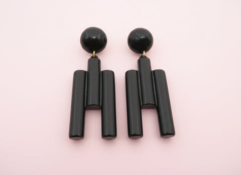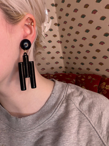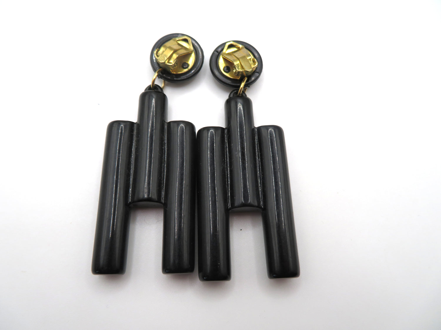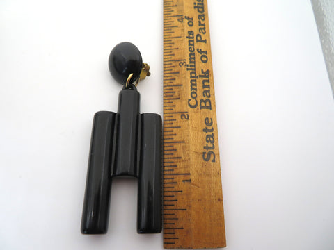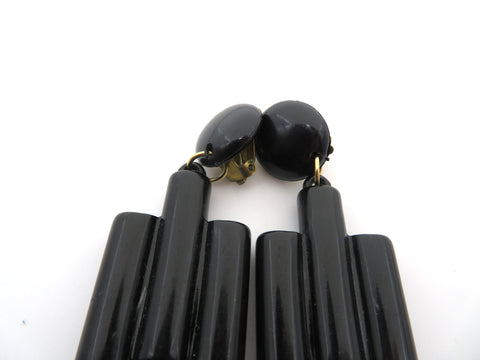Vintage Huge Cubist Charcoal Column Clip On Earrings