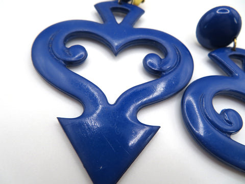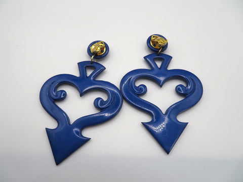 Vintage Huge Devil's Tail Heart Clip On Earrings