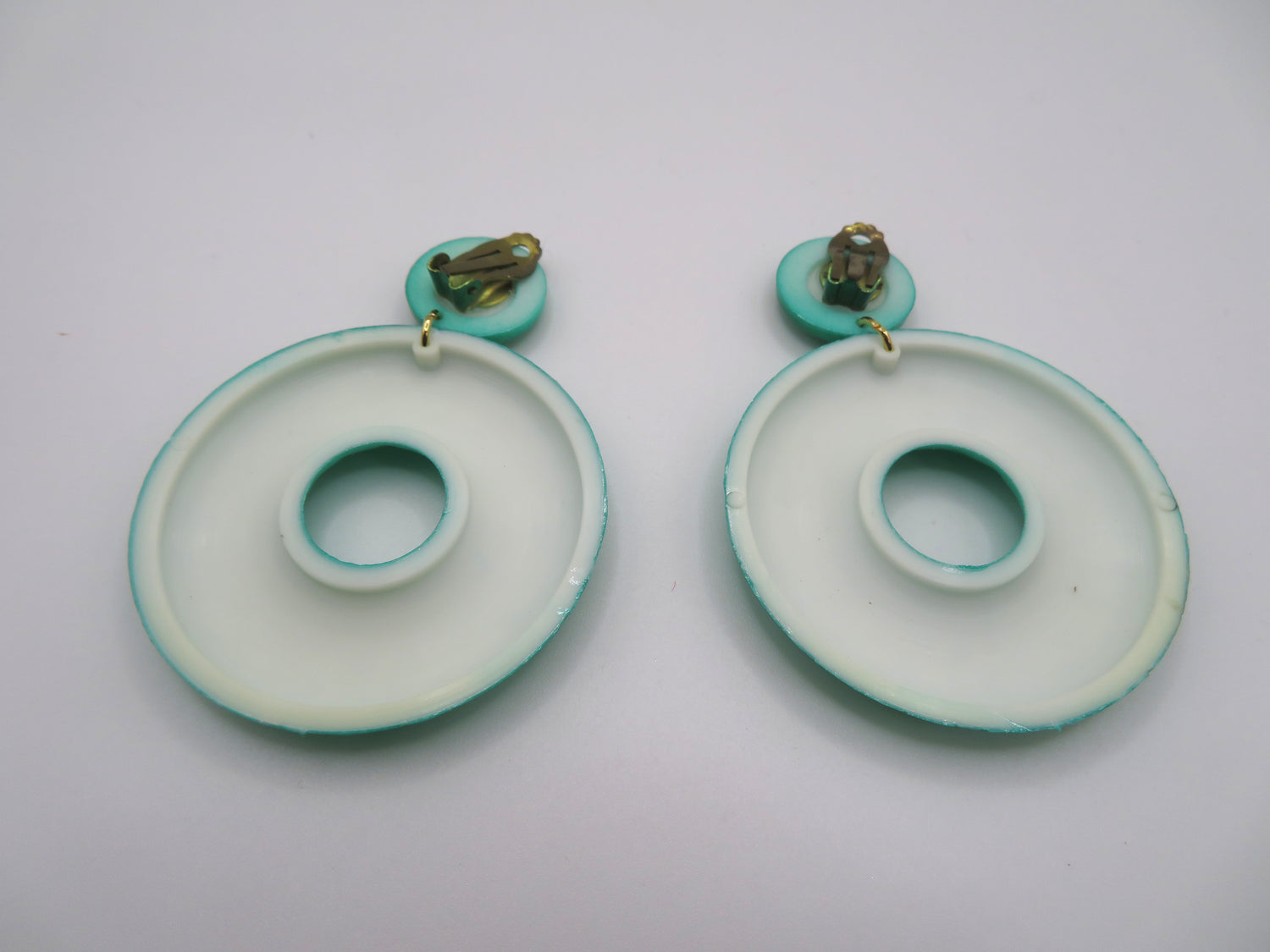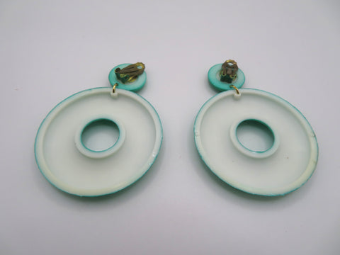 Vintage Metallic Kelly Green Hoop Clip On Earrings
