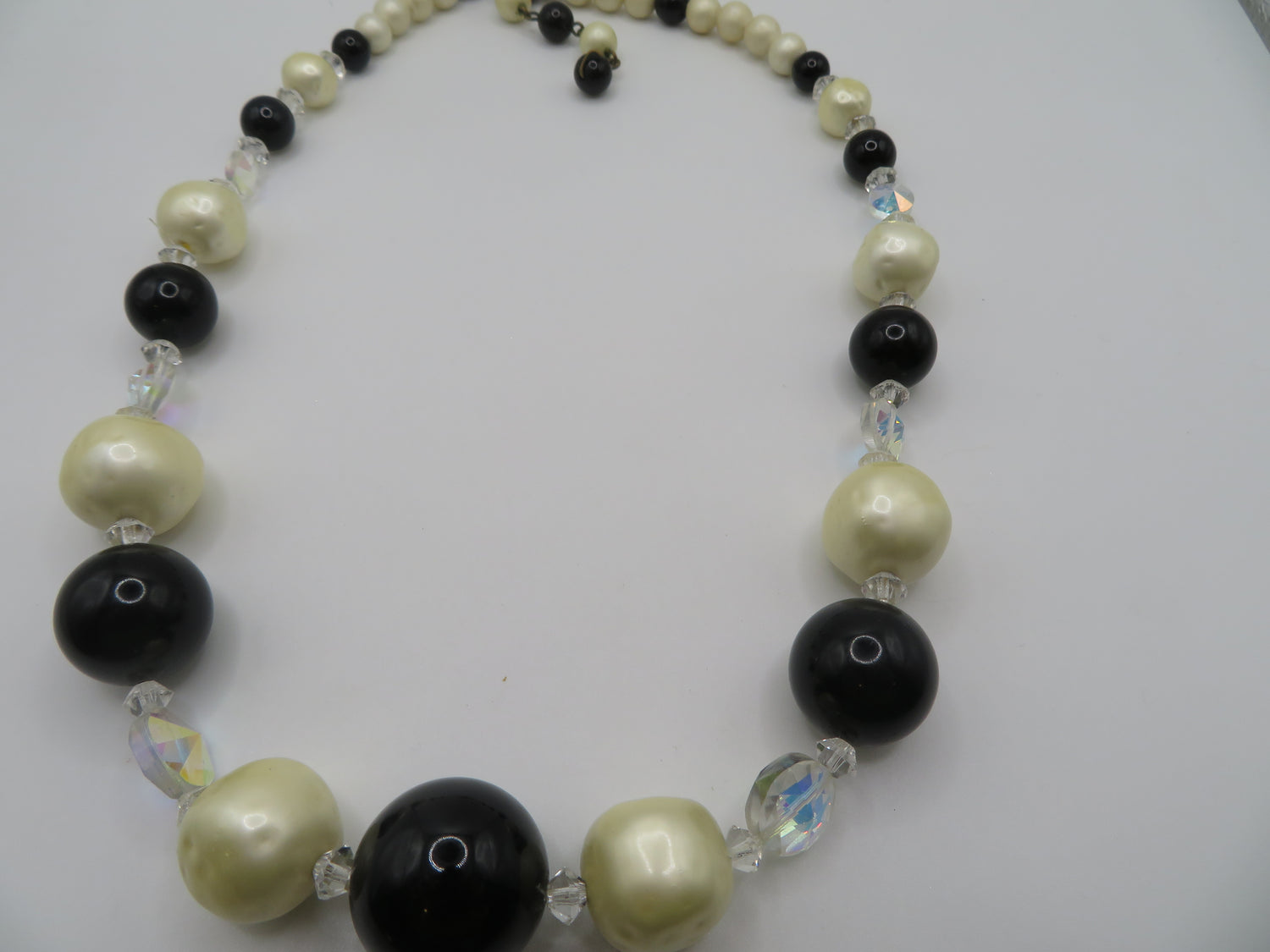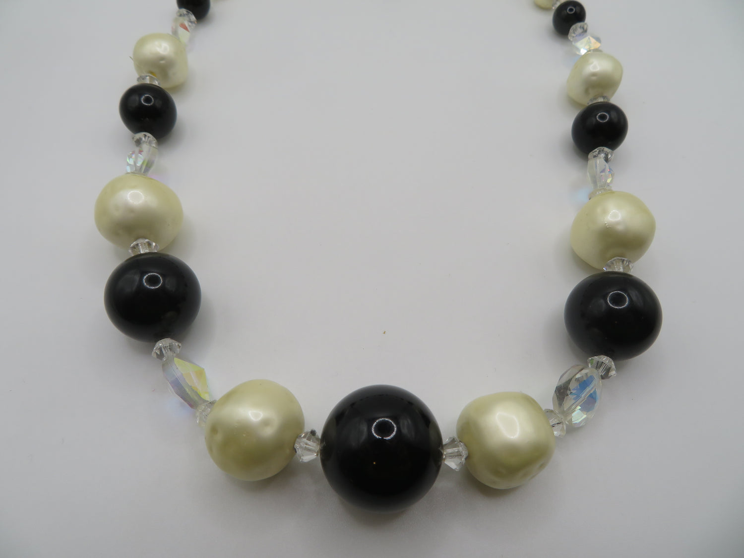 Vintage Oversized 1950s Black and White Pearl Necklace