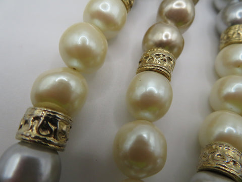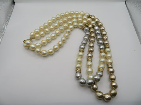 Vintage Chunky Three Tone Double Strand Pearl Necklace