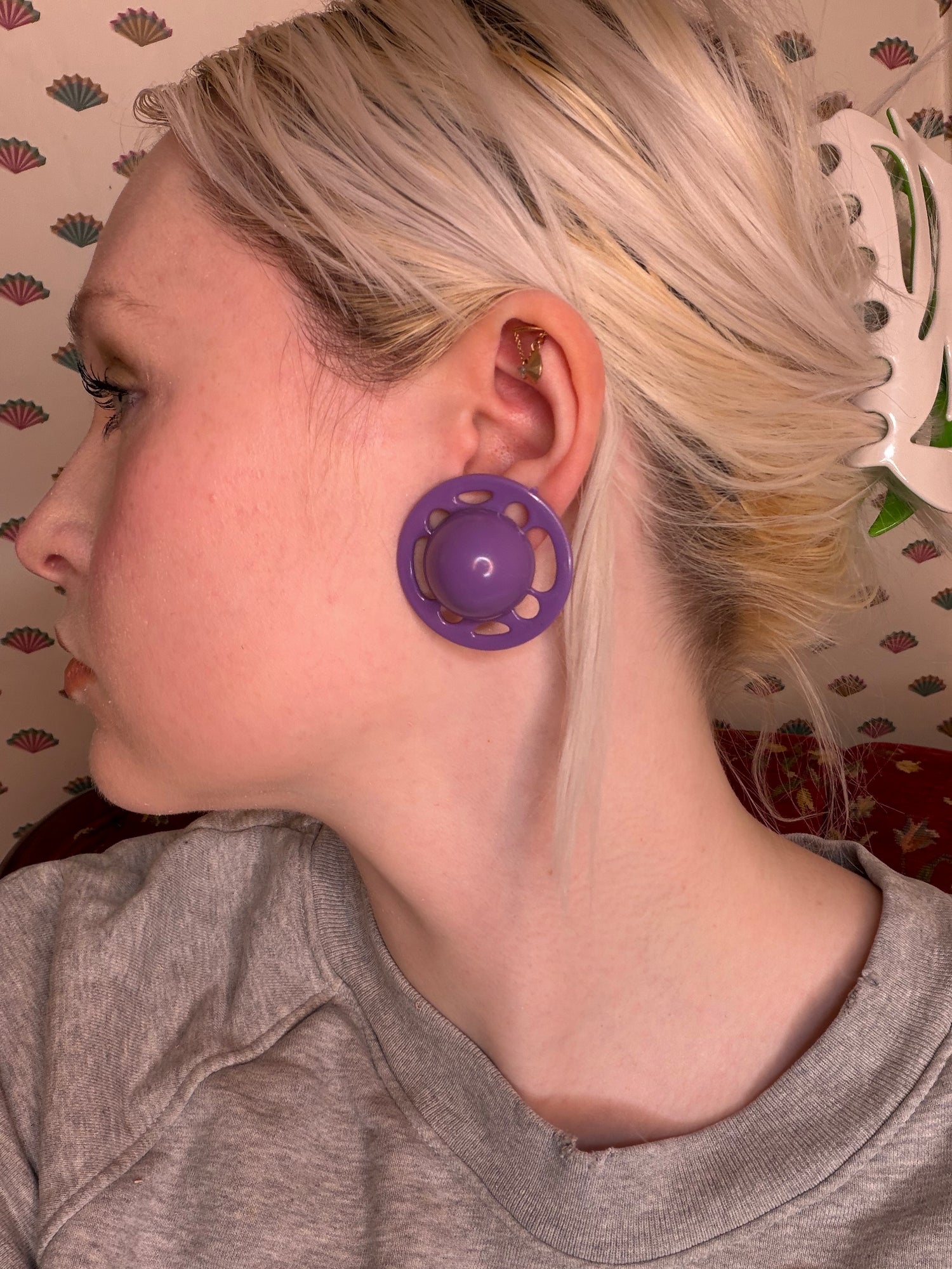 Vintage Purple UFO Button Style West Germany Clip On Earrings
