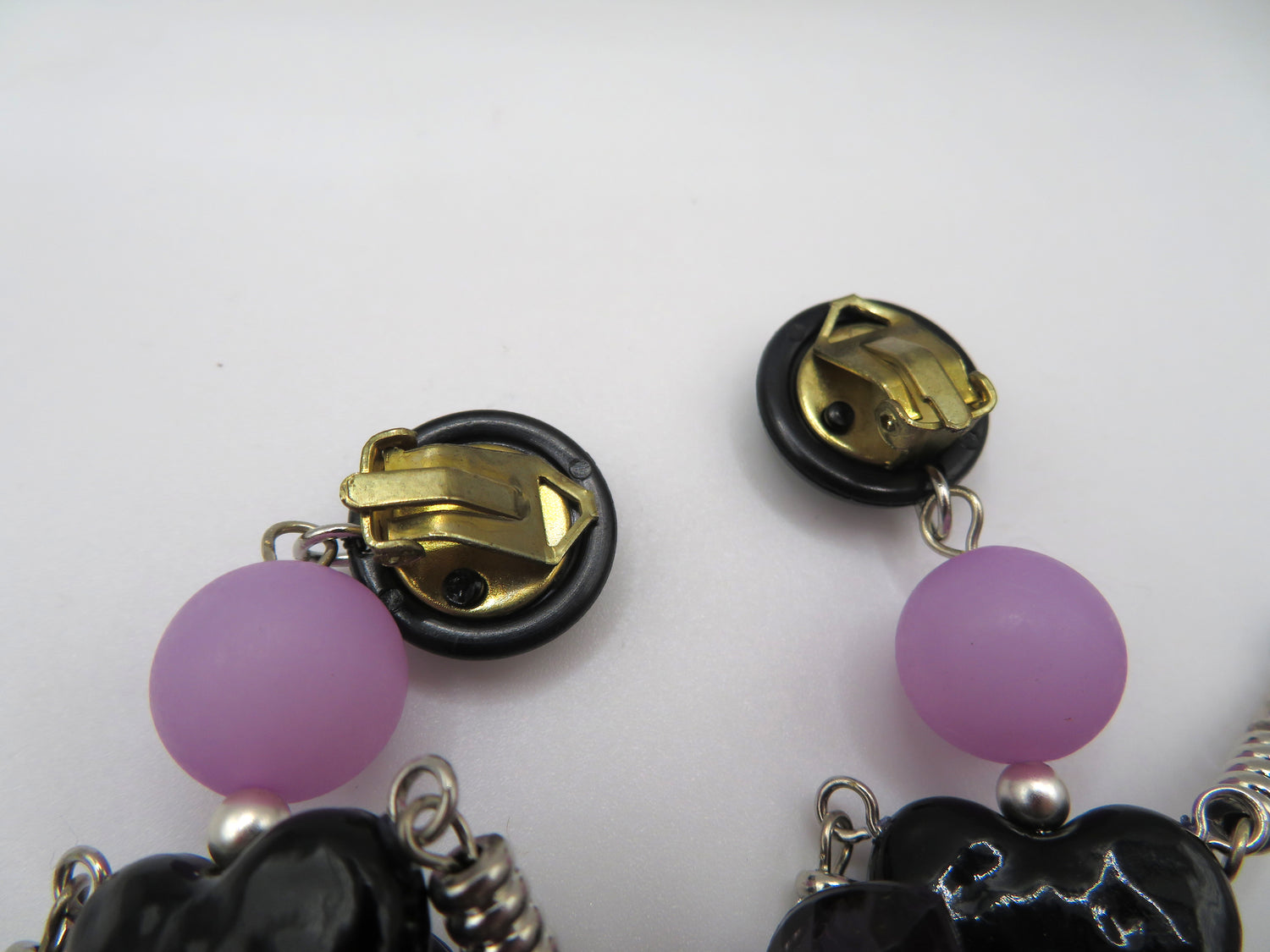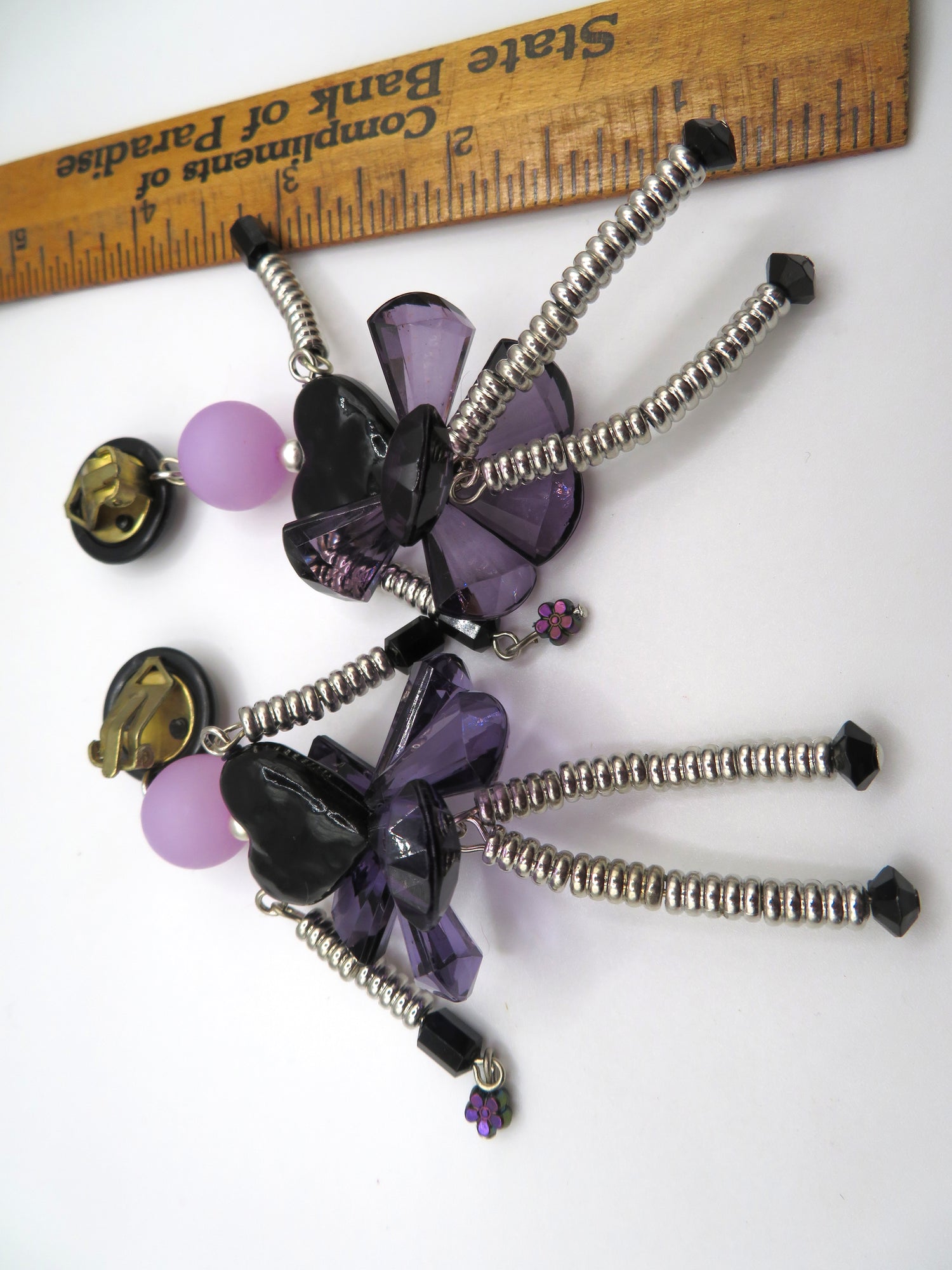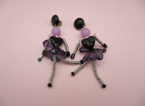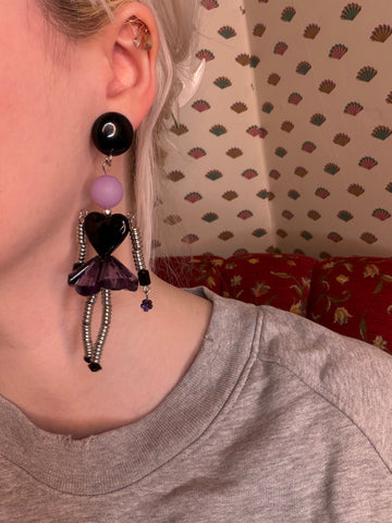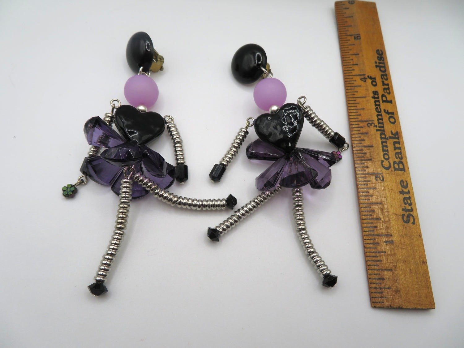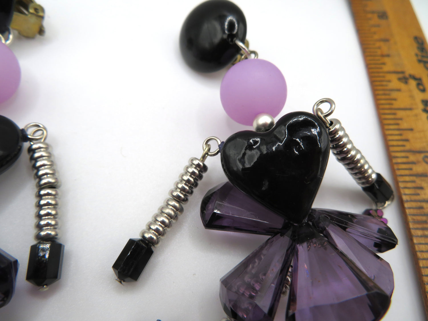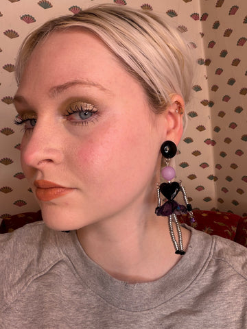 How adorable are our Vintage Rare Articulated Chunky French Doll Heart Earrings?! Truly a rare find unlike anything else we've seen, these earrings were made at an iconic factory on the outskirts of Paris throughout the 1980s - 1990s. They are huge at nearly four inches tall, and totally articulated with chunky little robot-like doll parts made of heart-shaped beads (!!!) with great movement and a lightweight feel so they are easy to wear all day. We can't get over how special these are.