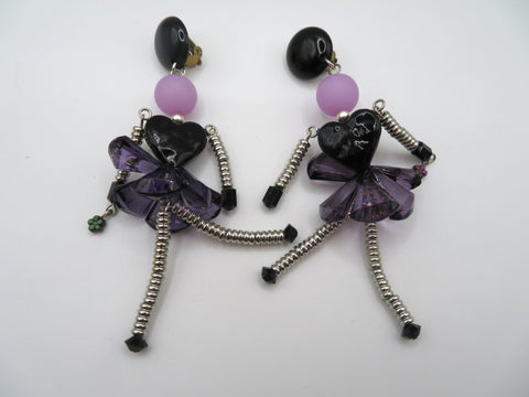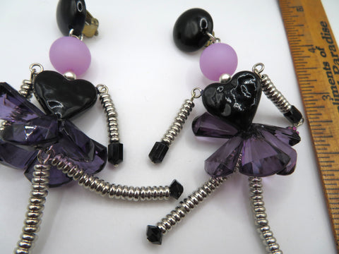Vintage Rare Articulated Chunky French Doll Heart Earrings