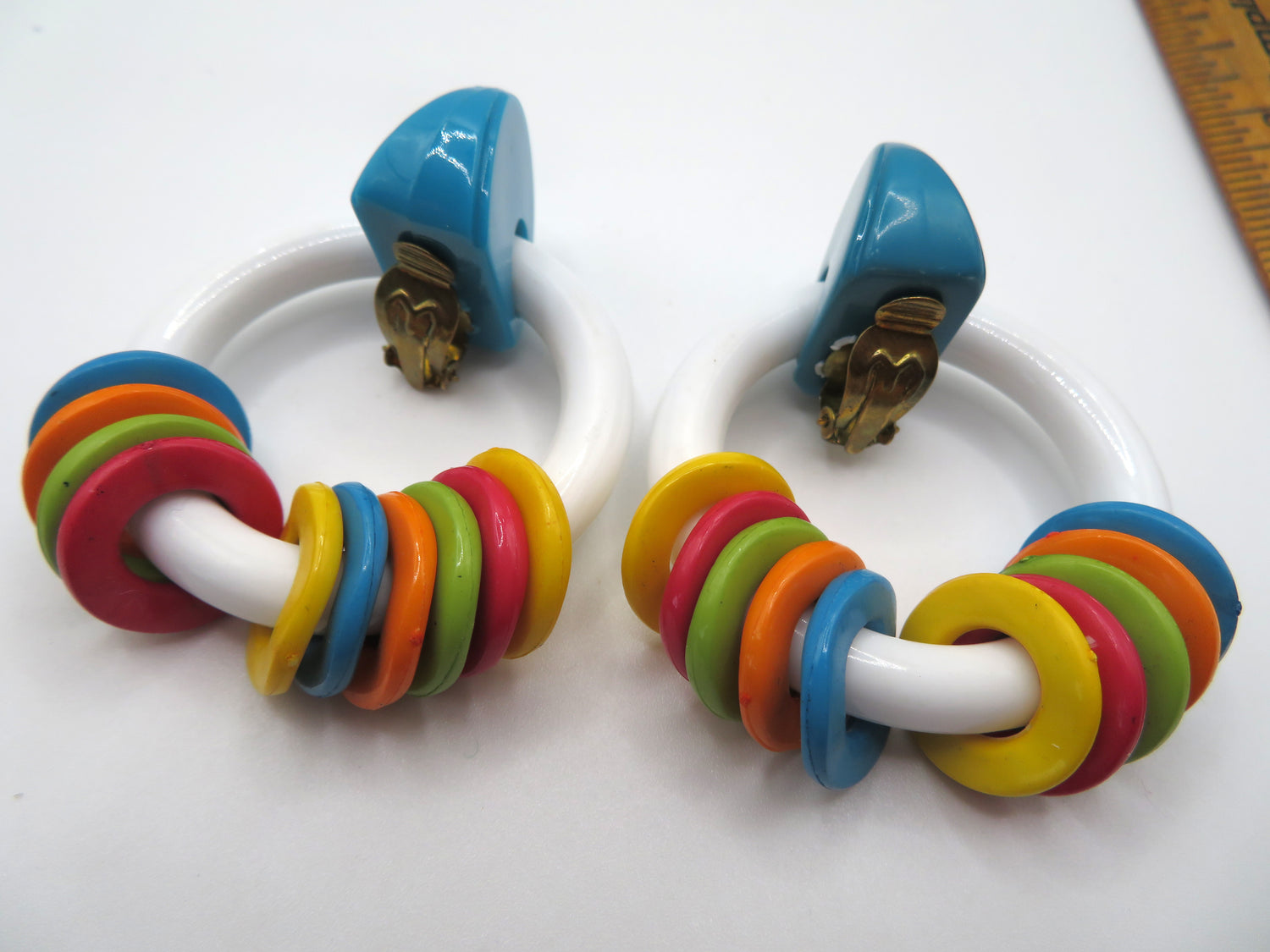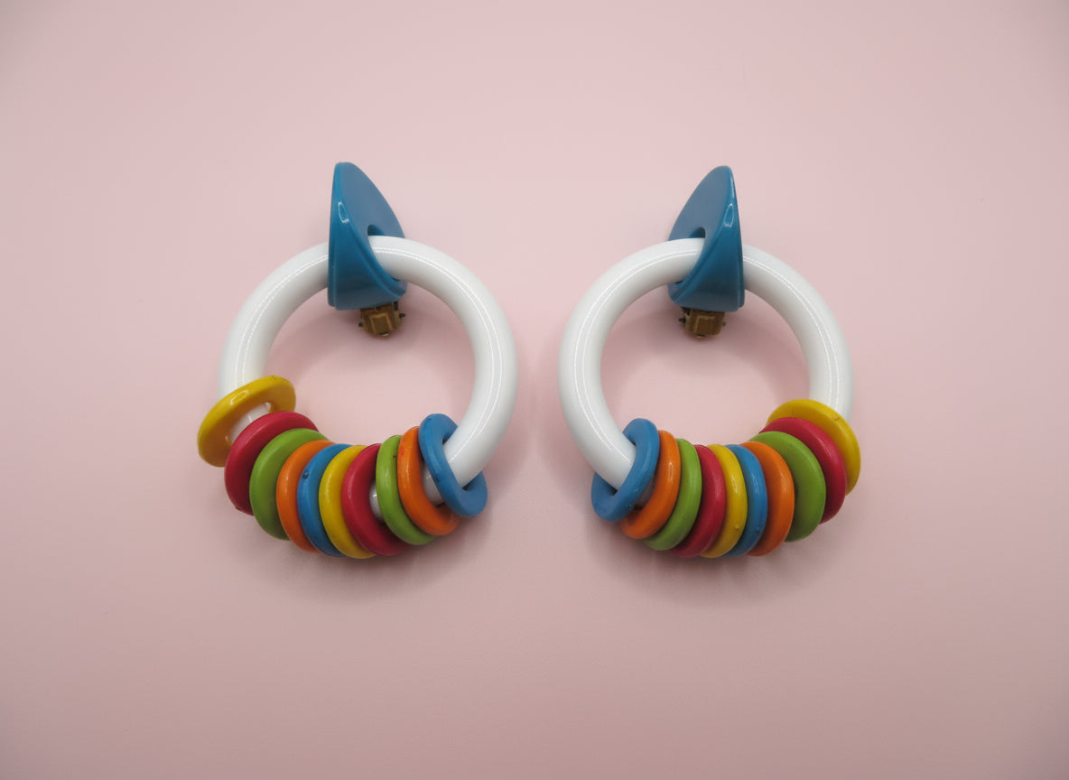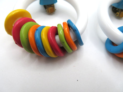 Vintage Rare ASMR Early Plastic Rattle Hoop Clip On Earrings