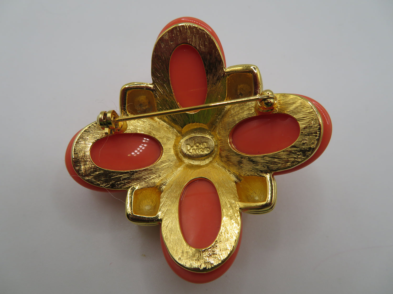 This Vintage Rare Joan Rivers Chunky Salmon Pearl Brooch adds a very fun, colorful pop of style to any outfit. It's a relatively hard-to-find piece, super weighty and truly transformative.
