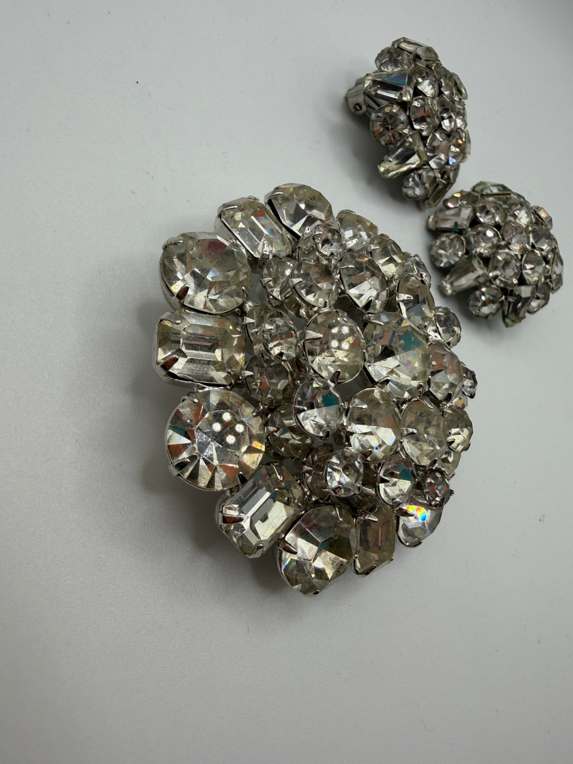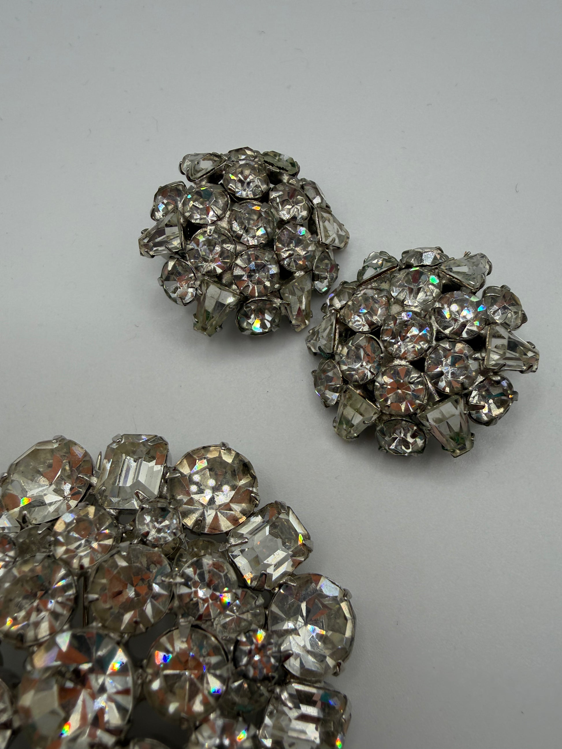 Vintage Sparkling Midcentury Domed Rhinestone Brooch & Earrings Set