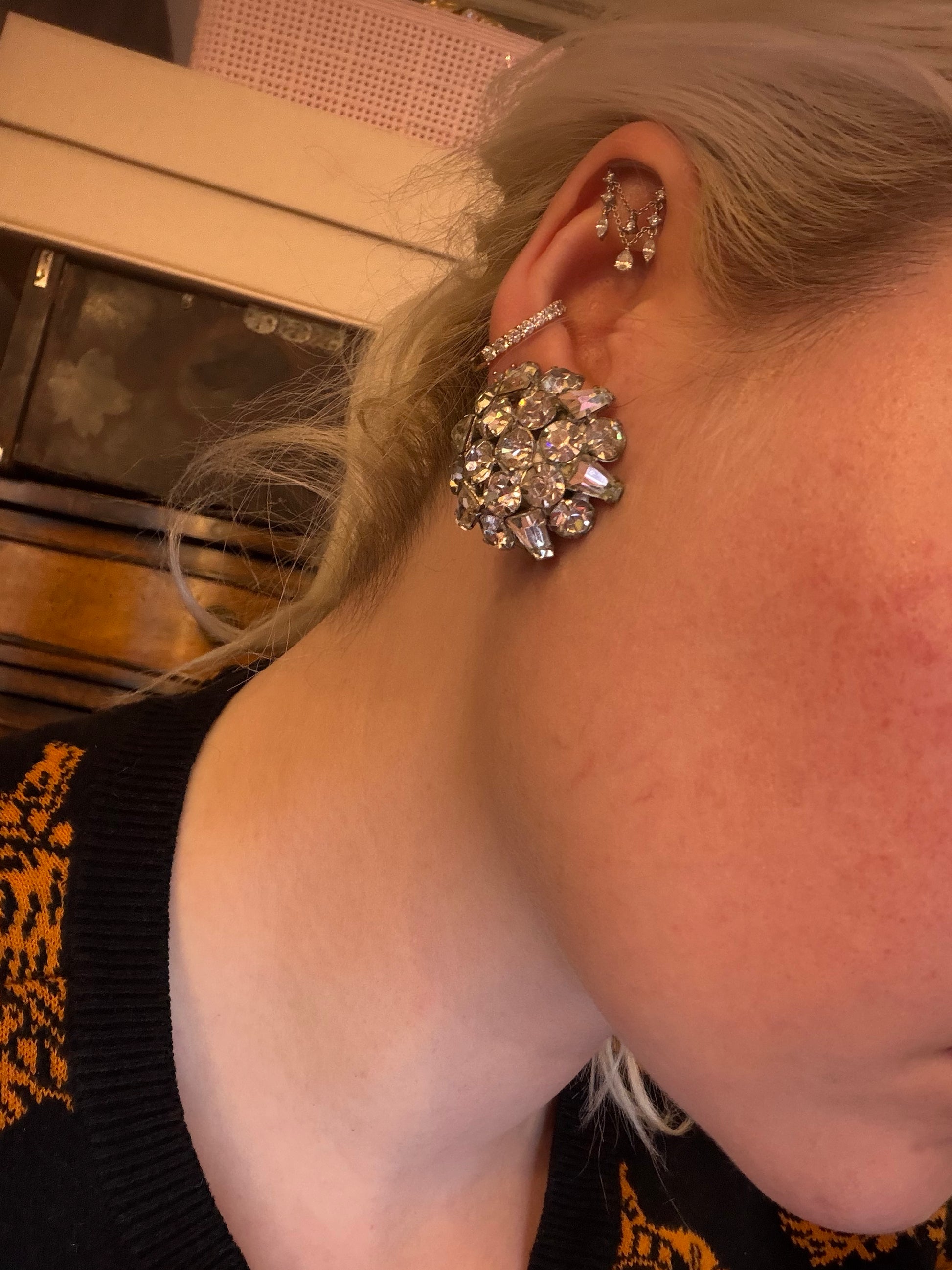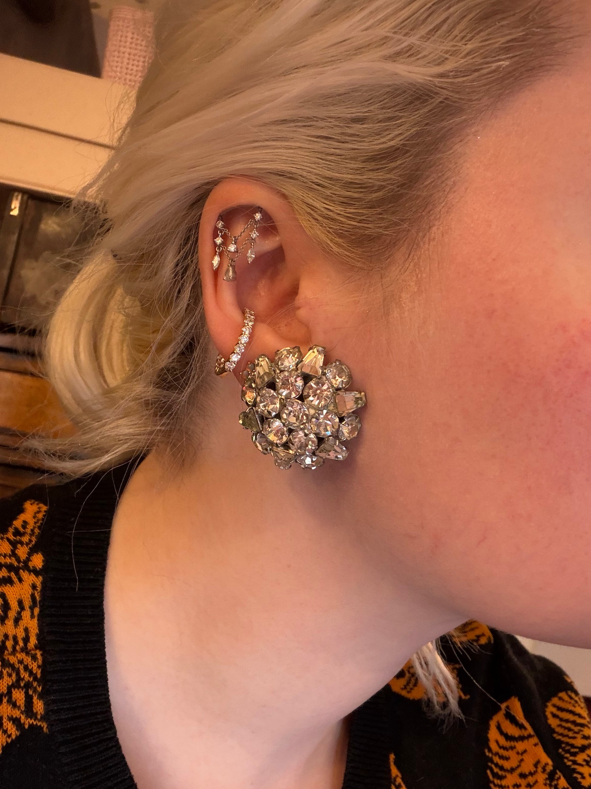 MATERIALS: Rhinestone, silver tone metal.