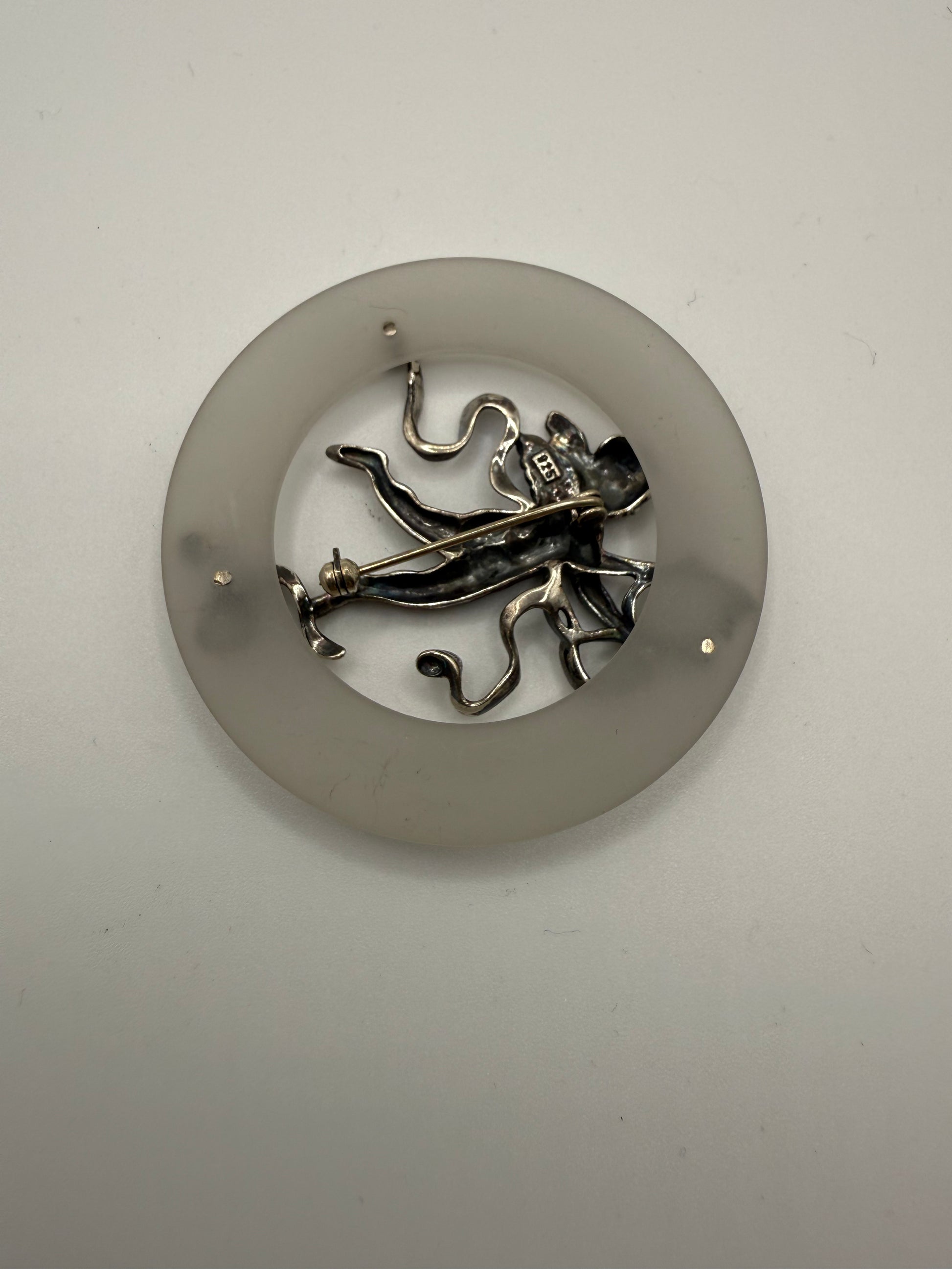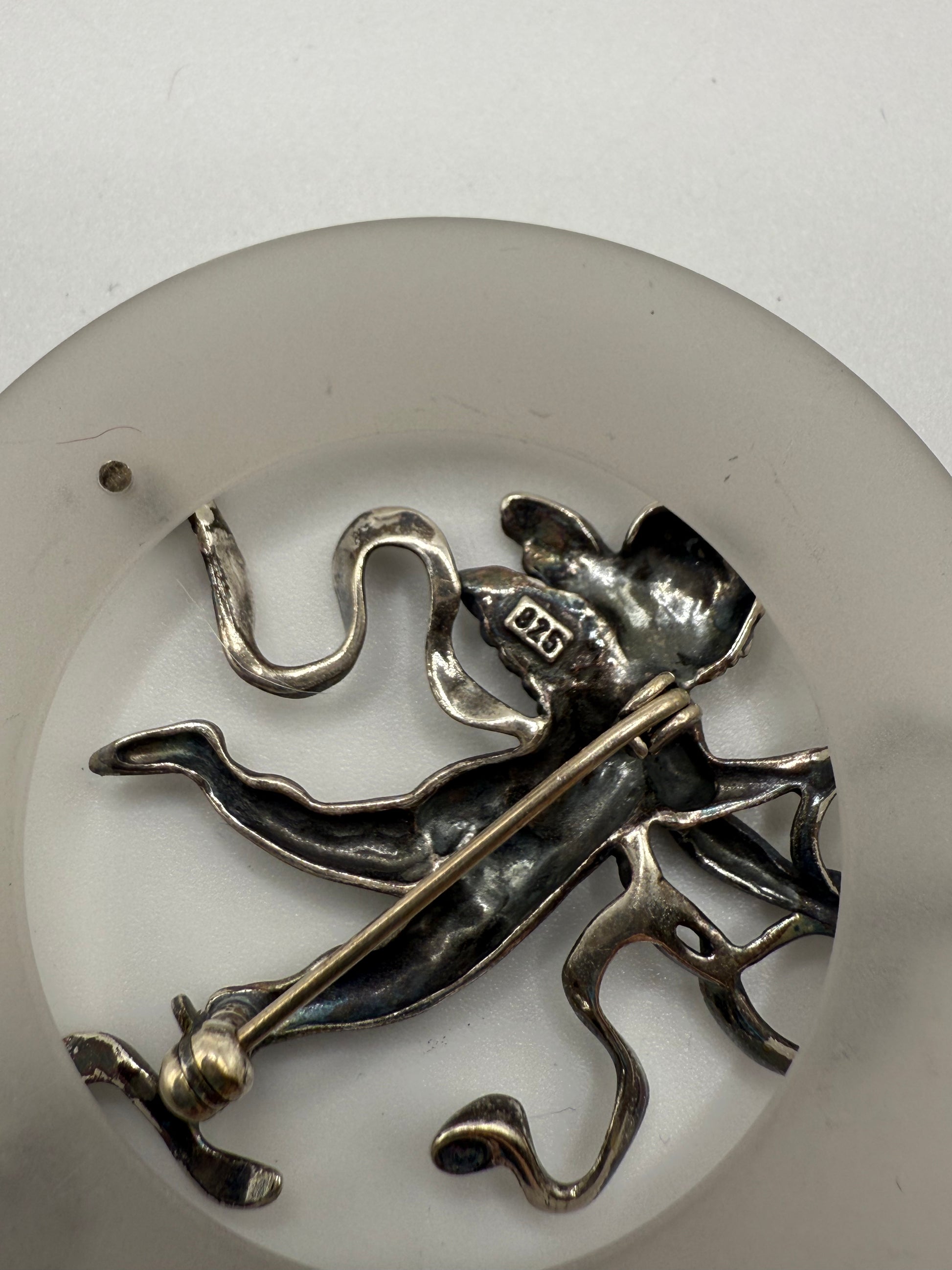 The perfect, chunky, ethereal cherub brooch to add to a brooch stack or wear as a pendant. This dreamy little angel baby is crafted out of 925 solid sterling silver and sits on a circle--we like to think of it as the moon--made of chalcedony quartz. Such a unique piece--from the Museum of Metropolitan Art's line of jewelry in the 1990s.