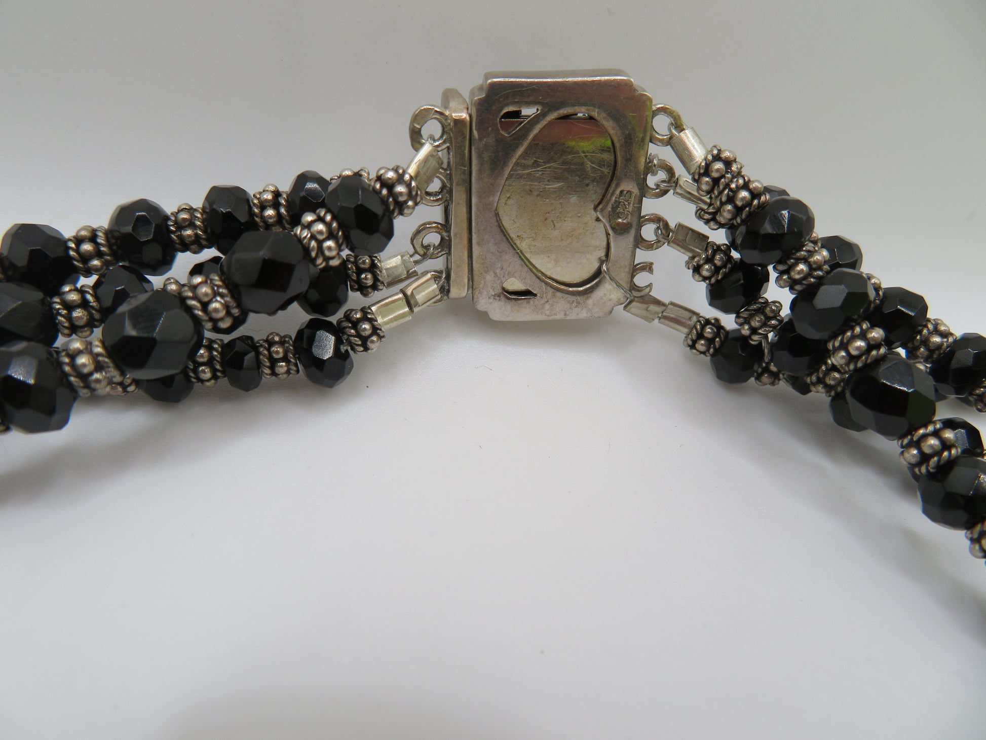 Vintage Sterling Silver Gothic Black Beaded Flower Choker Necklace