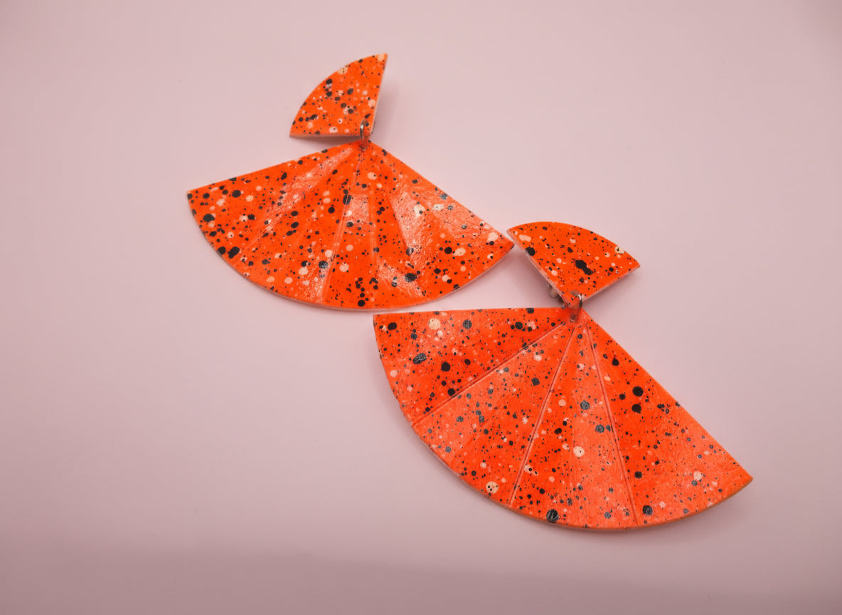 Vintage Tangerine Airbrushed Fan Clip On Earrings