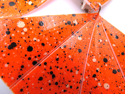 We love the original, playful spirit of these Vintage Tangerine Airbrushed Fan Clip On Earrings. They have a monumental scale and lightweight feel, with a poppy neon tangerine orange hue that lights up a room from afar. Great with a messy up-do; dresses up any fun, casual outfit.