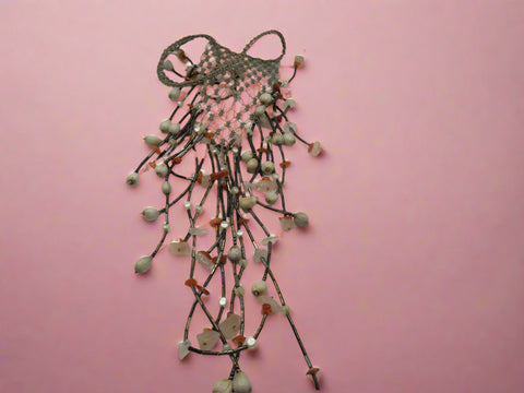 Vintage Woven Shell & Rose Quartz Fringe Statement Necklace